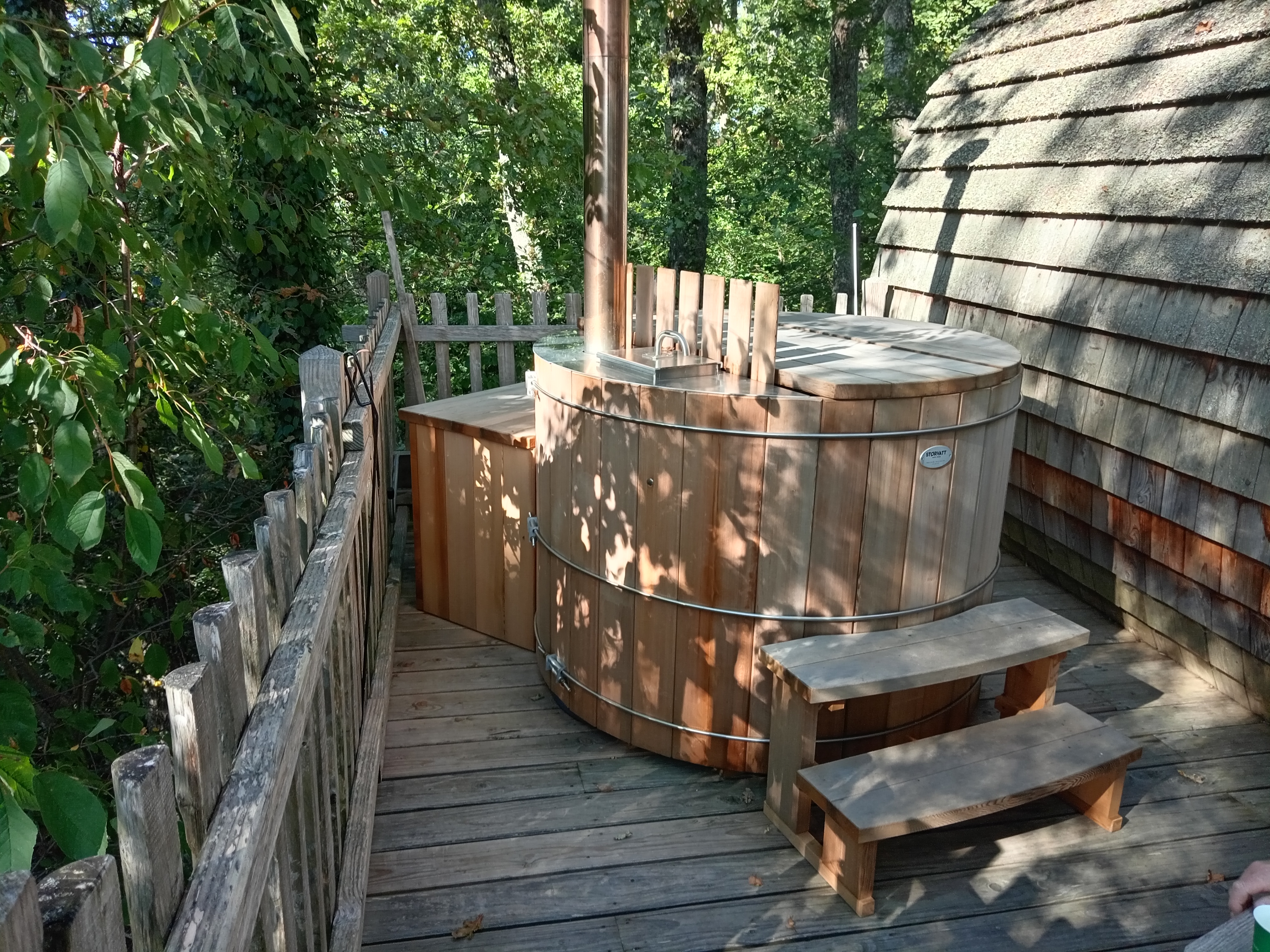 Très belle expérience dans la nature. On est vraiment au calme dans les arbres. C’est reposant et apaisant. Avec des écureuils et des oiseaux qui viennent manger les graines que vous leur laissez sur la terrasse. L’accueil est très sympathique. Il n’y a pas d’eau courante ni d’électricité mais on vous fourni de l’eau et de quoi vous nettoyer. Et le petit dej est vraiment top avec des croissants et pains au chocolat fait par un boulanger qui fut apprenti d’un MOF. Il y a aussi le bain nordique qui est top, relaxant avec une eau à 38 degrés. Bon ensuite il est bon de prendre la douche froide… mais c’est cela l’intérêt du bain nordique. Même par 9 degrés cela se fait tranquille ! On recommande donc fortement ce moment en dehors de nos habitudes citadines avec les oiseaux et le jour qui nous réveillent le matin doucement. On se reconnecte à la nature.