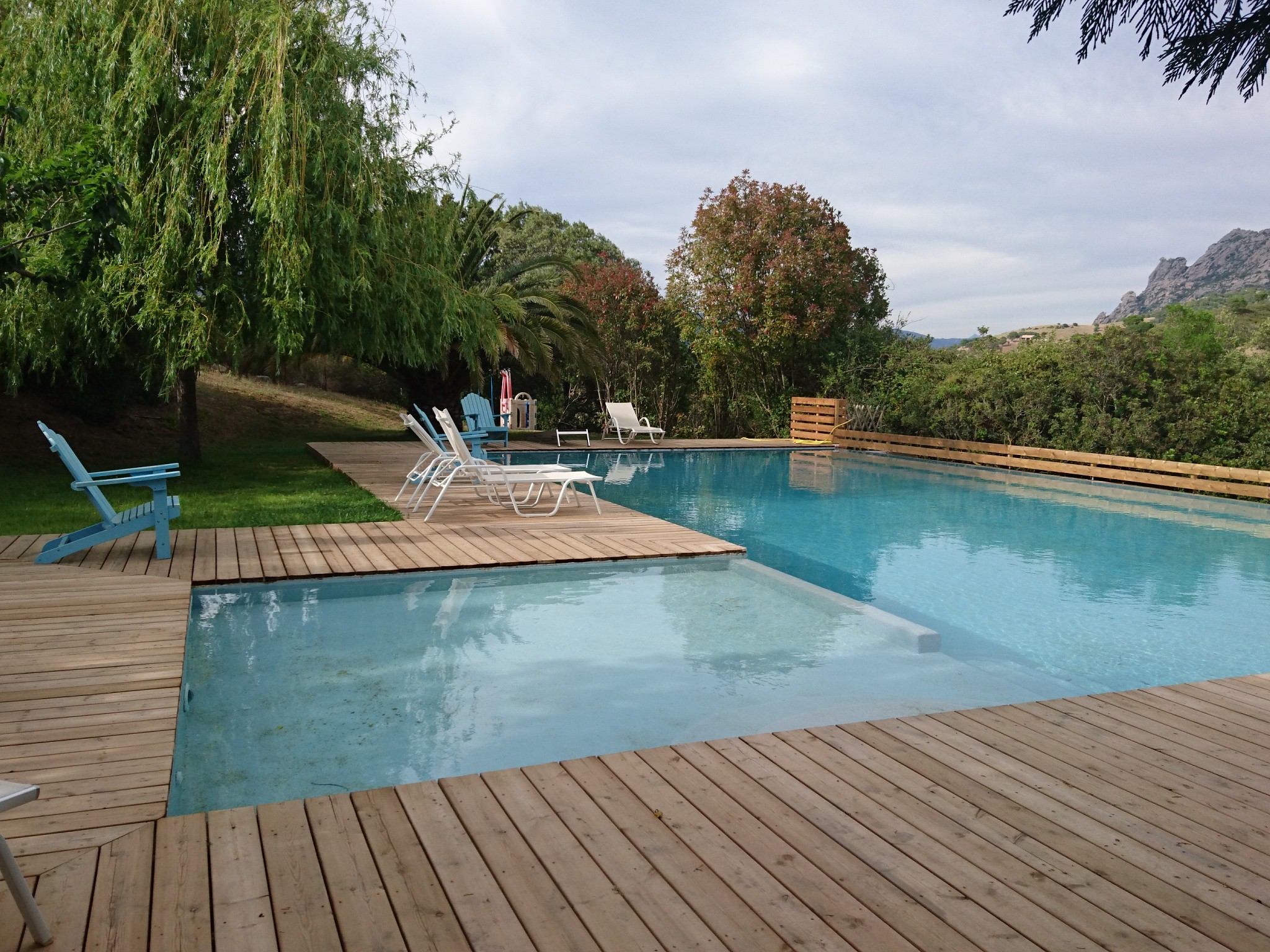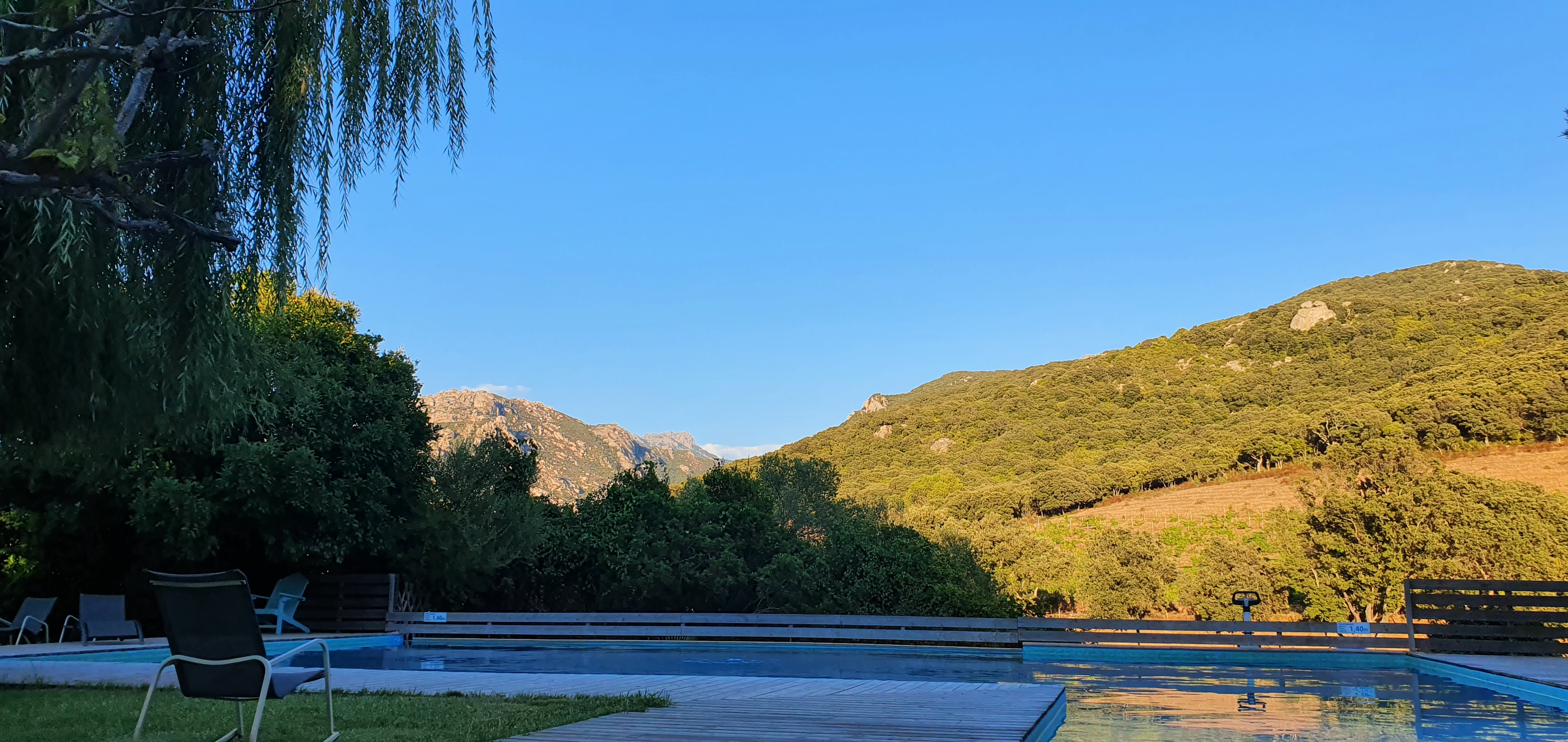 Un endroit charmant avec vue sur montagne, un domaine arboré, aménagé, avec des chiens et chats en liberté, on s'y sent vraiment bien ! Le personnel est très aimable, la terrasse à l'ombre et la jolie piscine en L avec vue sur montagne de véritables havres de paix. Les appartements (dans notre cas pour 4 personnes) propres et spacieux. Pas de climatisation mais un ventilateur disponible. Nous y avons passé 2 jours formidables et lors d'un prochain voyage en Corse, nous pourrions y revenir ! Nous le conseillons fortement 😁