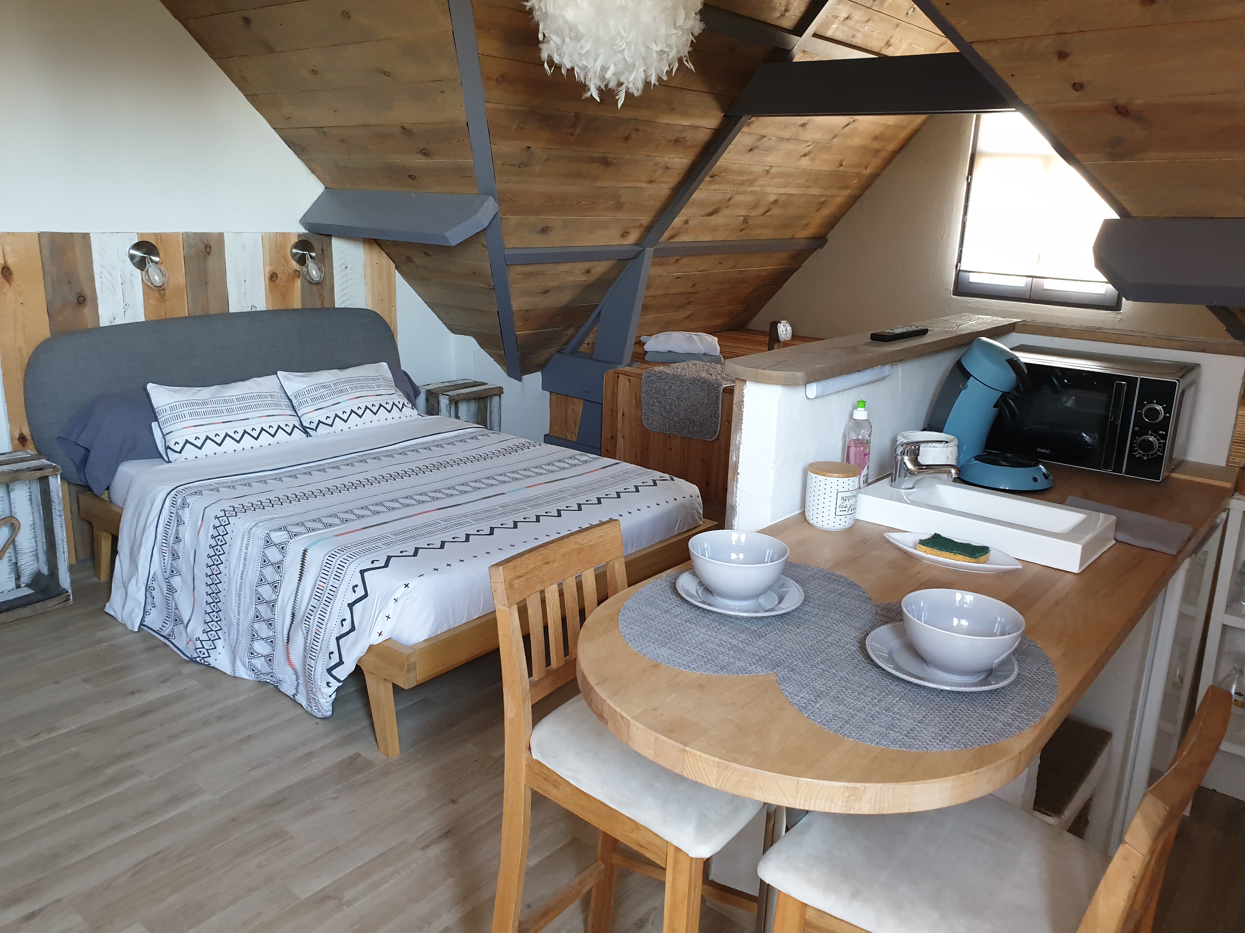 Nous venons d y passer la nuit , la chambre est superbe , c est propre , décoré avec goût, les petites attention de l hôte sont top ( démaquillant et cotons dans la SDB ) , ça sent bon , la vaisselle est top..... Le lit super confortable et douillet , les coussins sont top nous avons super bien dormi..... Le bain a bulle est top pour deux , on sait allonger ses jambes sans problème, et l installation de bois autour est très pratique..... Le petit déjeuner est parfait..... Nous recommandons ce lieu super pour un moment d évasion.