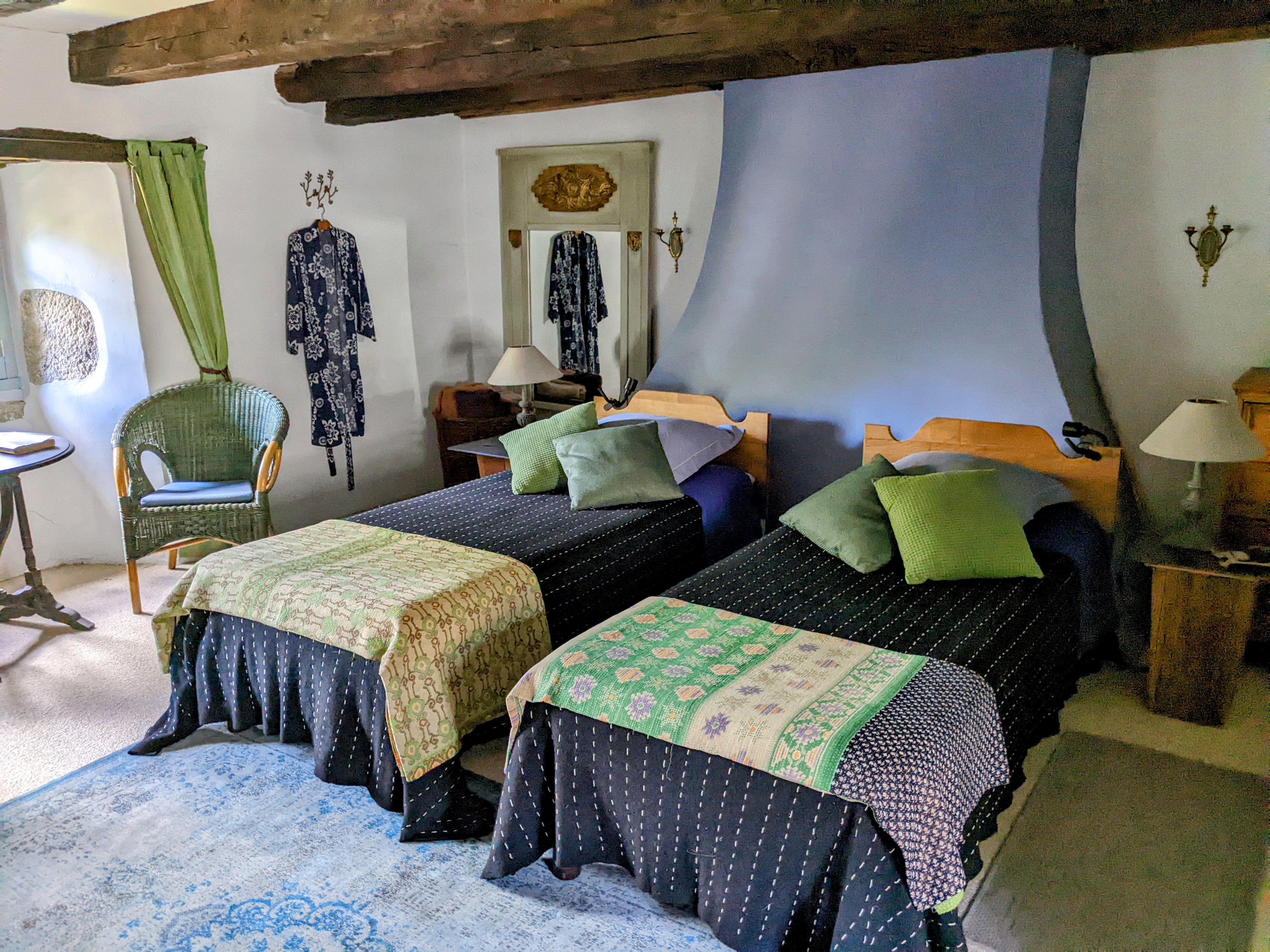 Cadre magnifique avec de très belles chambres décorées avec goût mais chambres d'hôtes......sans hôtes ! Nous avons été accueillis par la fille du propriétaire qui nous a montré nos chambres puis notre repas du soir qui était dans le frigo: une soupe que nous n'avons pas touchée,salade ,rillettes, fromage en petite quantité et dessert pour 22 euros. Vin qui nous sera ensuite facturé 12 euros la bouteille ! Puis plus personne jusqu'au lendemain. Heureusement que nous n'avions pas prévu le repas du 2ème soir! Dommage que l'accueil soit si peu travaillé ...