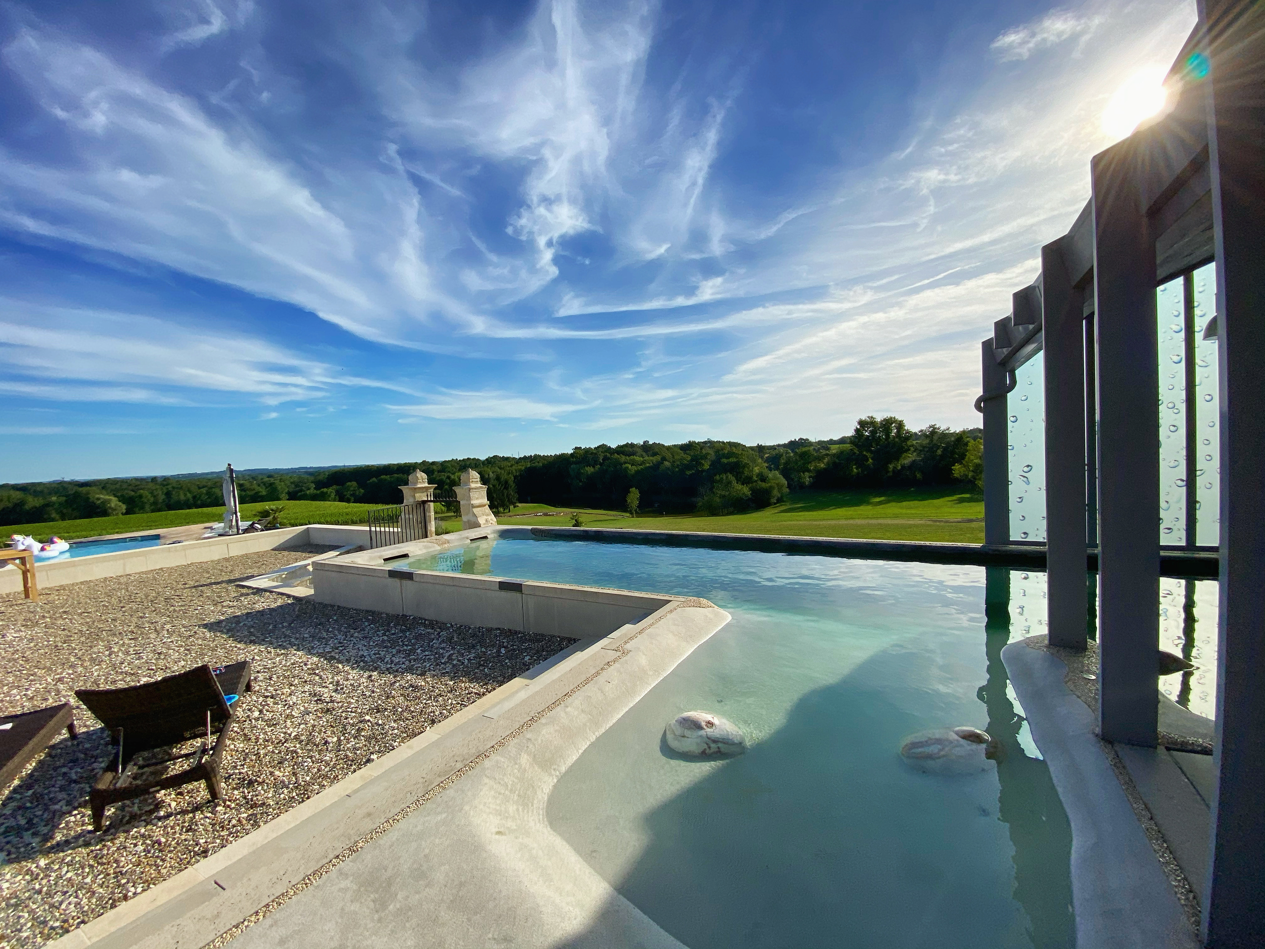 Accueil personnalisé, chaleureux, le calme des lieux, la table d'hôte de grande qualité totalement faite maison servie avec le vin du château encore bravo à la cuisinière. Chambre spacieuse, très propre. Très belle rénovation, intérieur extérieur. Les piscines sont superbe surtout celle qui est sur la terrasse. Elles offrent une vu sur les vignobles imprenable. Bref, une très belle et bonne adresse totalement à recommander. Et encore merci pour l'accueil et la disponibilité des hôtes.