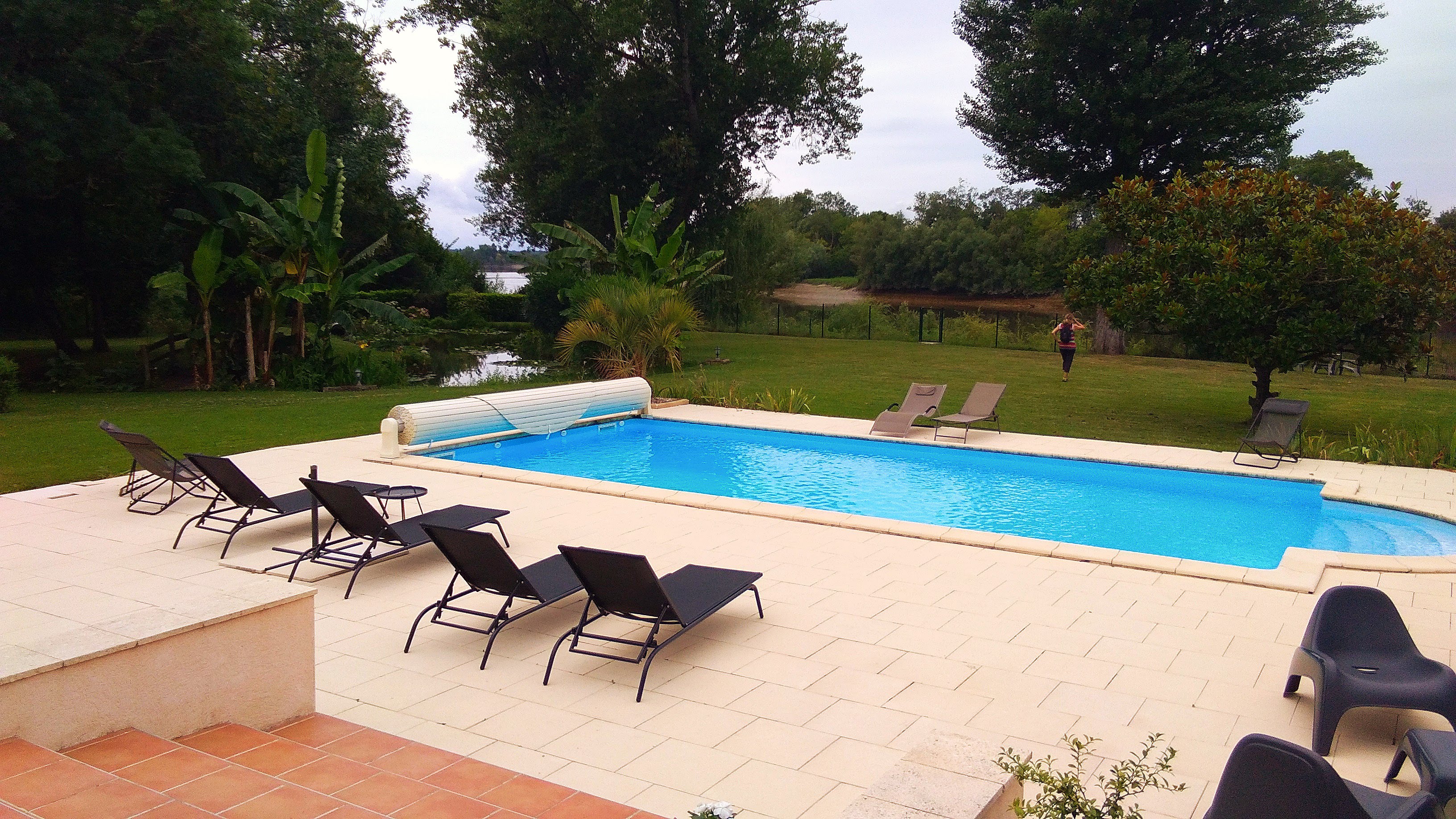 Magnifique jardin avec piscine au bord de la Dordogne, chambre très confortable et propre. Notre fille de 2 ans a adoré parcourir le jardin pour voir les poules et autres animaux. L'accueil est très chaleureux et le petit déjeuner excellent. Grâce à leurs conseils nous avons pu visiter gratuitement un domaine viticole avec dégustation. La proximité avec Saint Emilion et le centre ville de Libourne en fond un endroit parfait pour visiter la région. Nous sommes ravis.