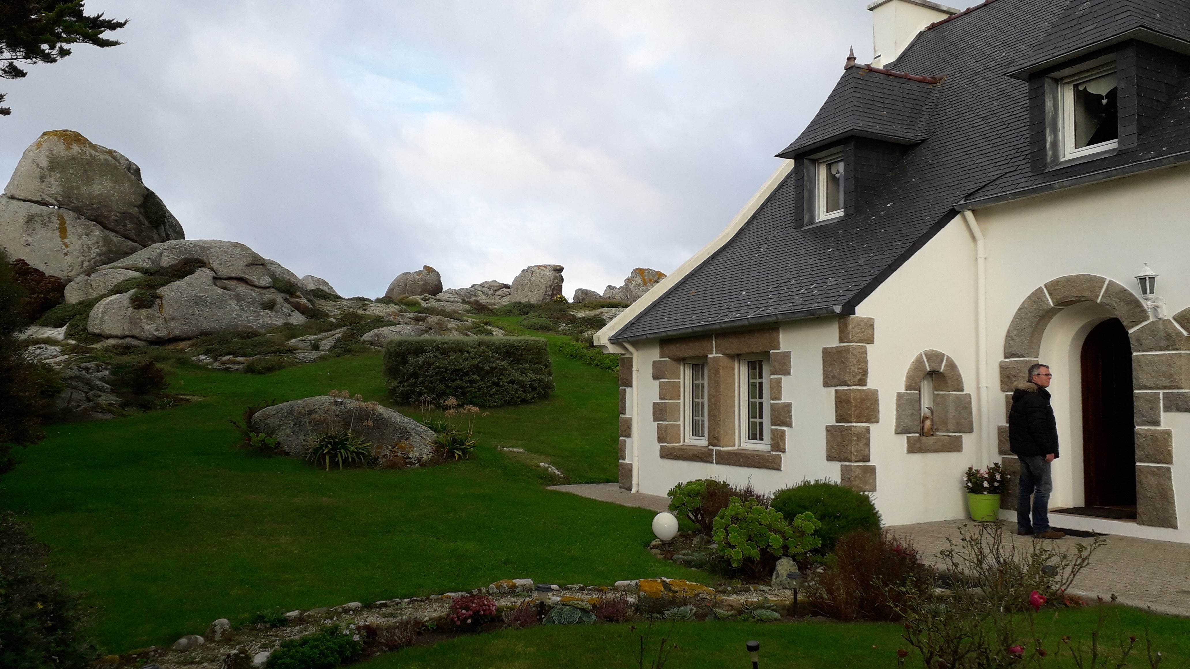 Excellente adresse. Accueil chaleureux, Marie Jo est très sympa. Nous avons visité le magnifique jardin, ses rochers, sa vue sur la mer, sur le phare de l'île Vierge. Marie Jo est très disponible et discrète. Chambre spacieuse, agréable, avec son petit coin lavabo. Grande salle de bain avec douche et baignoire. Proposition d'une deuxième chambre pour la 3e personne, pour une tranquillité supplémentaire. Belle maison décorée avec goût. Petit déjeuner très copieux et varié, service nickel. Un bon moment passé dans une très belle région à découvrir sans hésiter.