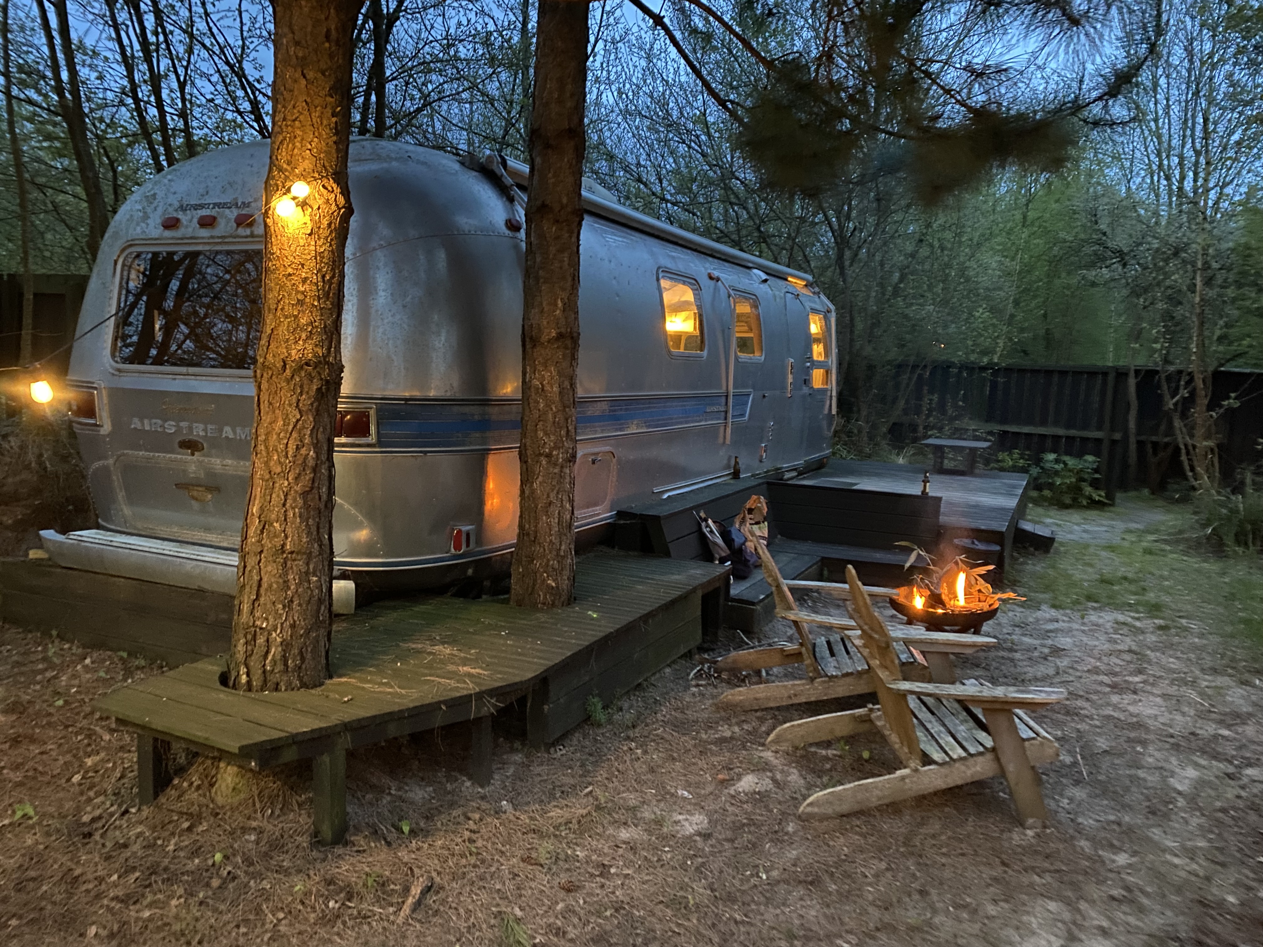 On avait tout prévu pour cette nuit dans le lodge voyage Airstream, nuit qui nous a couté la belle somme de 290€ !! Sur photos on est sous le charme de cette belle caravane américaine, avec son écran plein air et son feu de bois, une fois sur place l'intérieur de la caravane n'est pas du tout au gout américain, surprise on ne peut pas la vérouiller (ni dedans ni dehors), la toile de protection extérieure est cassée (n'a même jamais été restaurer) mais celà ne géne aucunement les propriétaires ! Résultat temps pluvieux et tous nos plans extérieurs qui tombent à l'eau... Pas de solutions pour nous protéger, pas de toile, pare à vent/pluie/soleil, rien n'est prévu en cas de mauvais temps pour profiter de l'extérieur... Le ménage n'est PAS FAIT, poussiére et toile d'araignée au rdv, je rappelle le prix de la nuit 290€ ! Je ne recommande pas ce lieu, hors de prix par rapport à la prestation. Fan des états-unis passer votre chemin, la Airstream vaut le coup de l'extérieur seulement. Nous avons trouvé dans le même village, un lodge beaucoup moins cher (120€), avec un extérieur abrité, et propre !