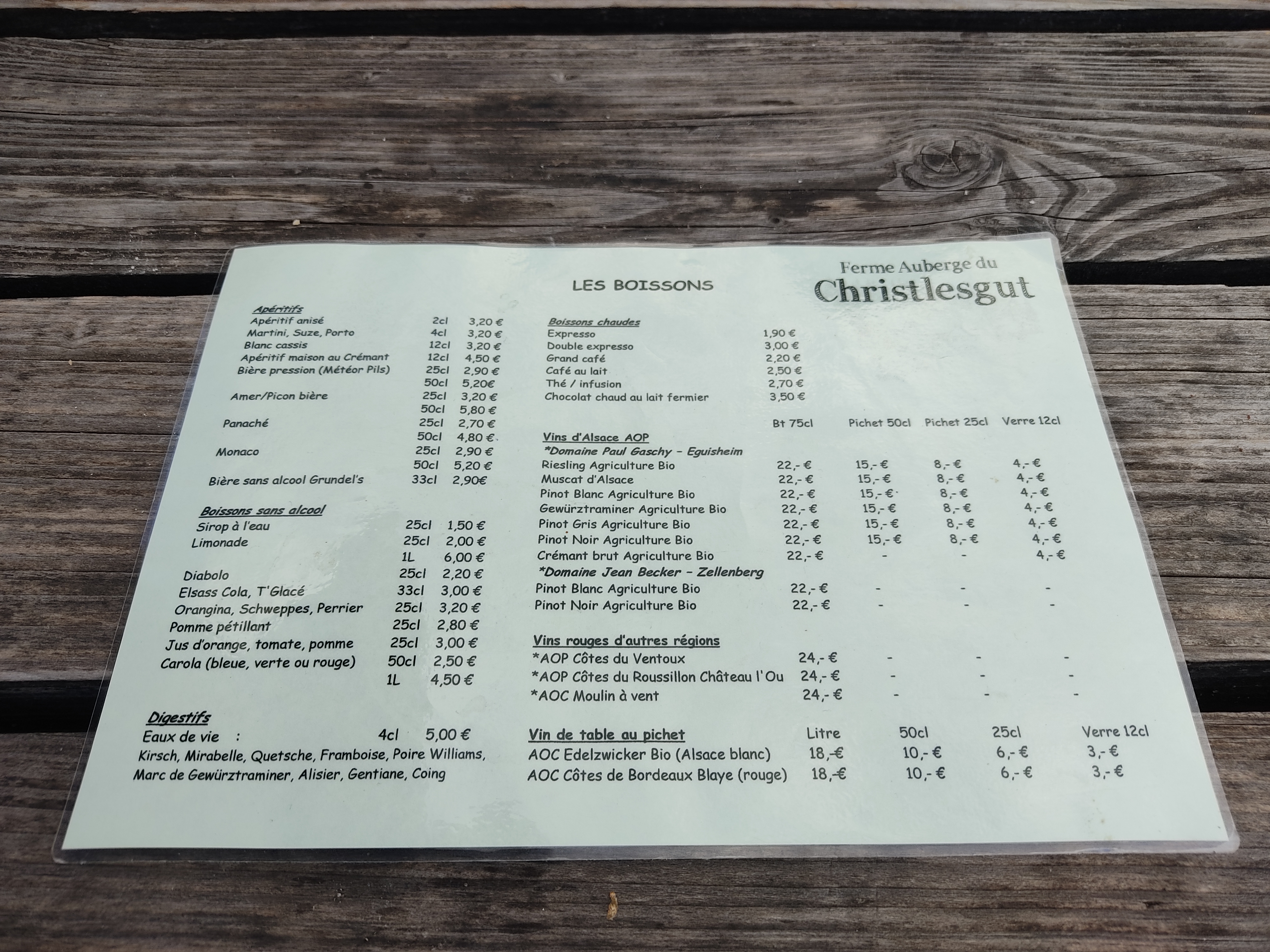 Depuis plus dix jours nous faisons les fermés auberge dont pour certaines nous sommes revenus 2 et 3 fois. J'ai pris un munster coiffé qui est censé être un gratin de pommes de terre. En fait il n'en est rien. Pas d'oignons, pas de lardons et des pommes de terre bouillies en cube avec du munster et du cumin, qui n'est pas mentionné dans le menu. Fade archi fade. Un gratin de pommes de terre en Alsace est Roïgebrageldi et non des patates à l'eau comme servies ce soir. L'impression de de ce dimanche soir semble être du travail bâclé sans la présence de responsables. Nous sommes très déçu. Cela ne vaut absolument pas le détour.
