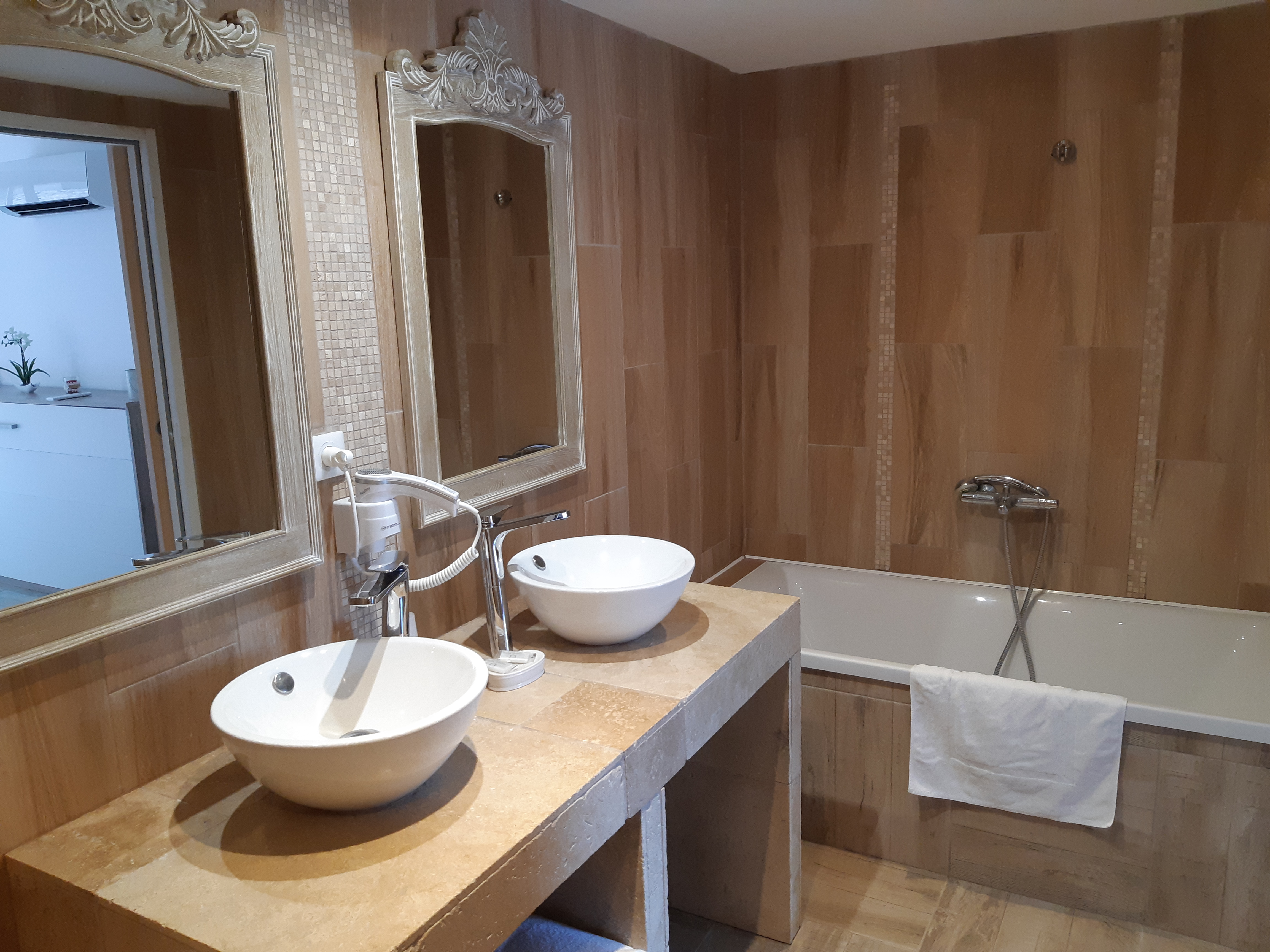 Lieu très agréable,très bien accueilli. La chambre très bien dommage un petit problème de clim, avec cette grosse chaleur. Petit déjeuner parfait. Très bonne adresse.