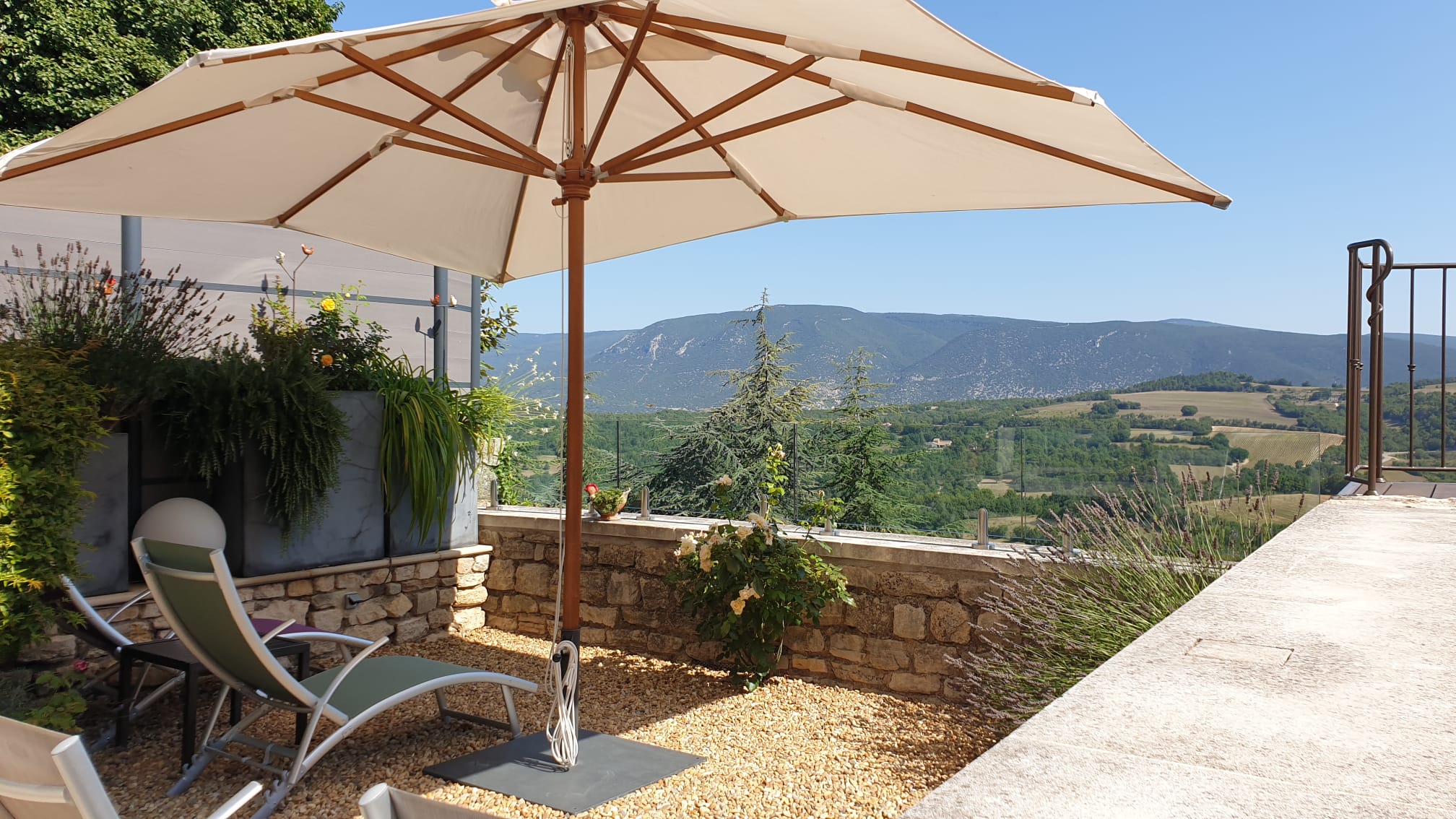 Superbe maison d’hôtes (6 étoiles….) Décorée avec goût, un accueil chaleureux de Stéphane et Patrick aux petits soins pour nous, nous conseille pour visiter la région….. Terrasse avec une vue imprenable, piscine, tout est bien …. Propreté irréprochable ! Petits déjeuners exceptionnels ! Tout est au top et donne envie de revenir. .