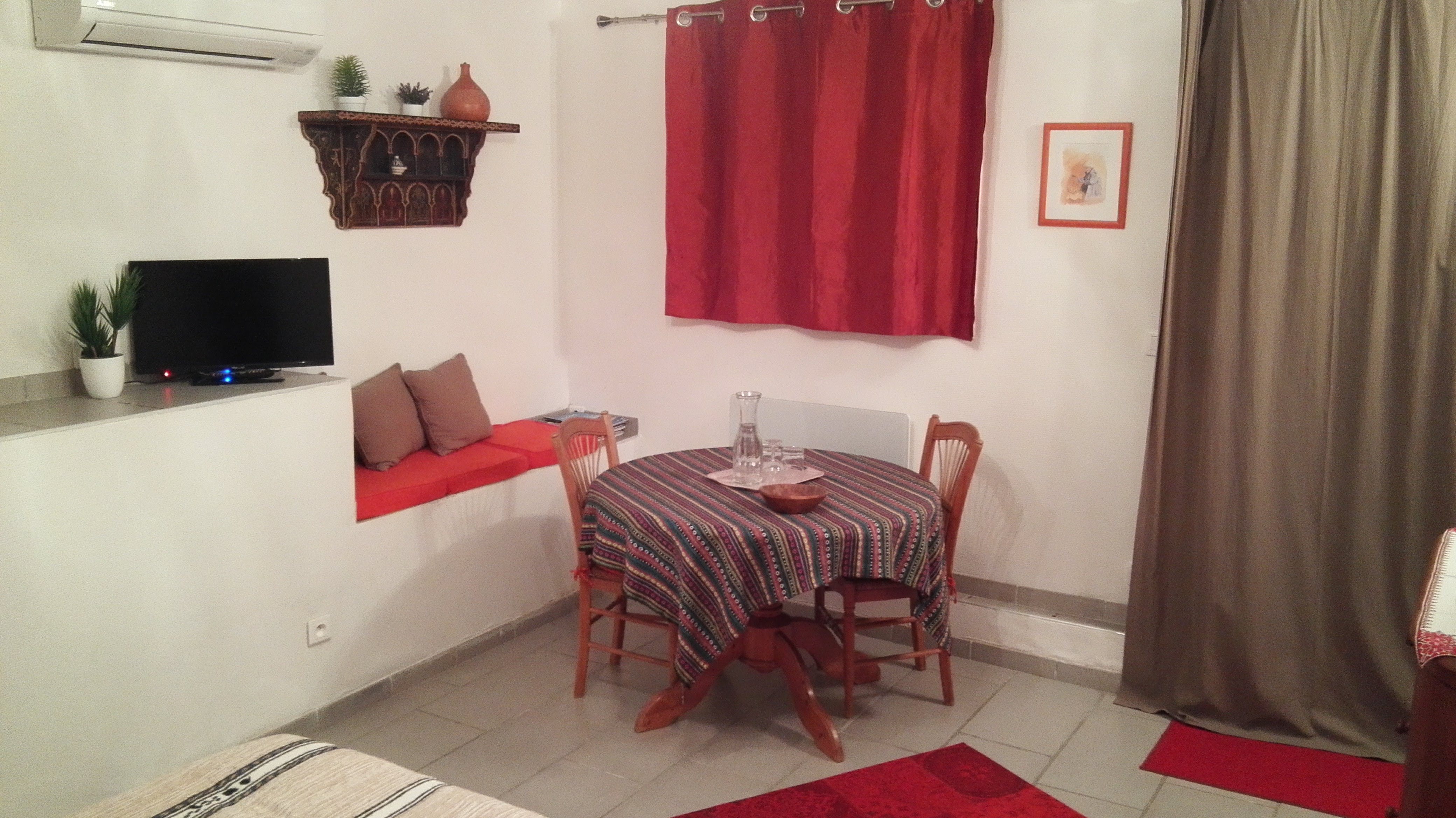 C'est un endroit très calme, il dispose d'une piscine et d'une place pour se garer. La décoration est de style marocain. Les propriétaires sont adorables.