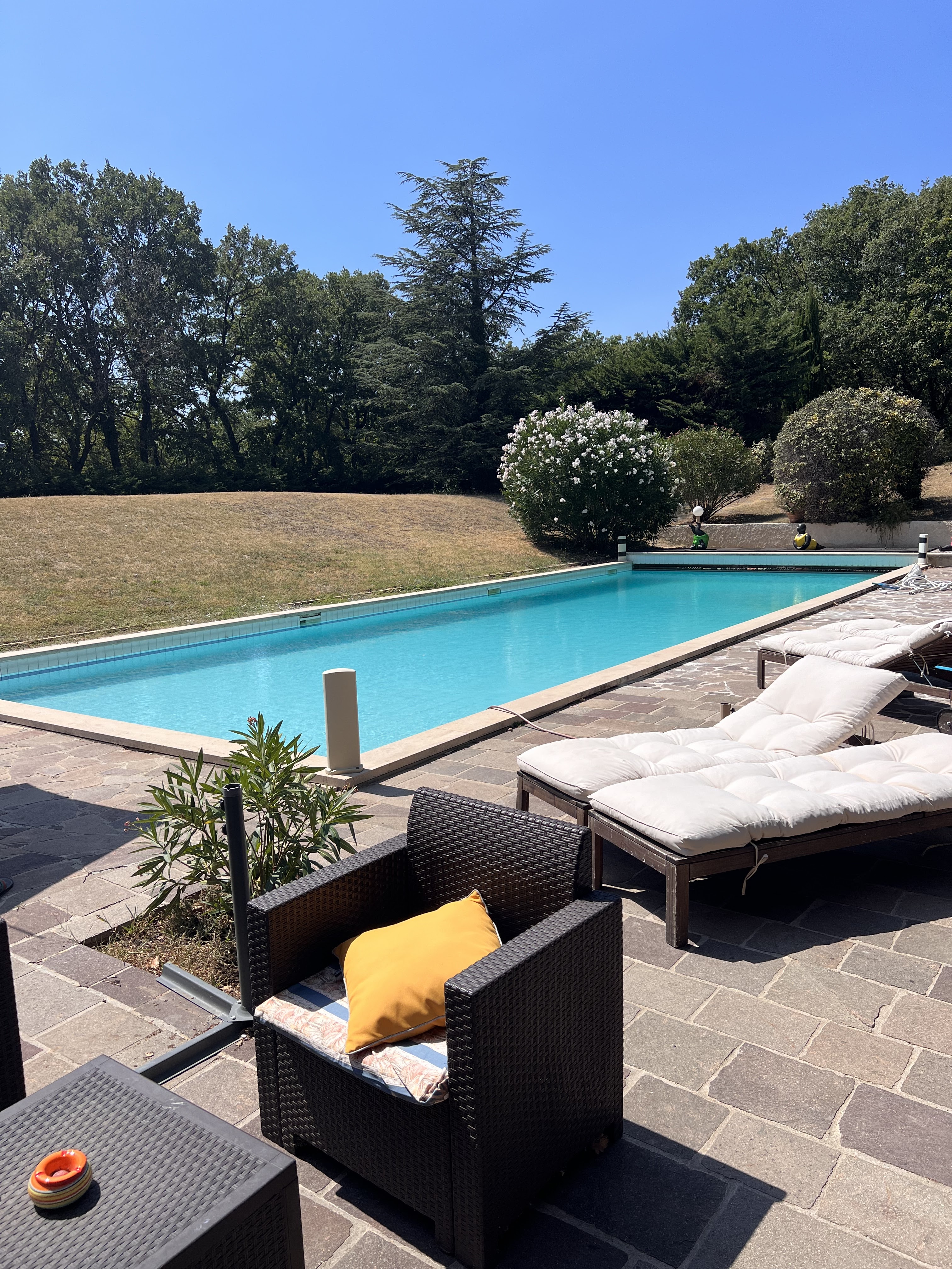 Un magnifique endroit au calme sous une forêt de chênes. l Accueil est digne de la beauté du lieu, on est immédiatement conquis par l ambiance ,la sérénité du lieu que nos hôtes savent préserver. Un belle est grande piscine apporte un espace détente bienvenue , j ai adoré la poésie des baigneuses ! Merci pour cette belle soirée repas. C est promis la prochaine fois je réserve la soirée fondue helvétique !