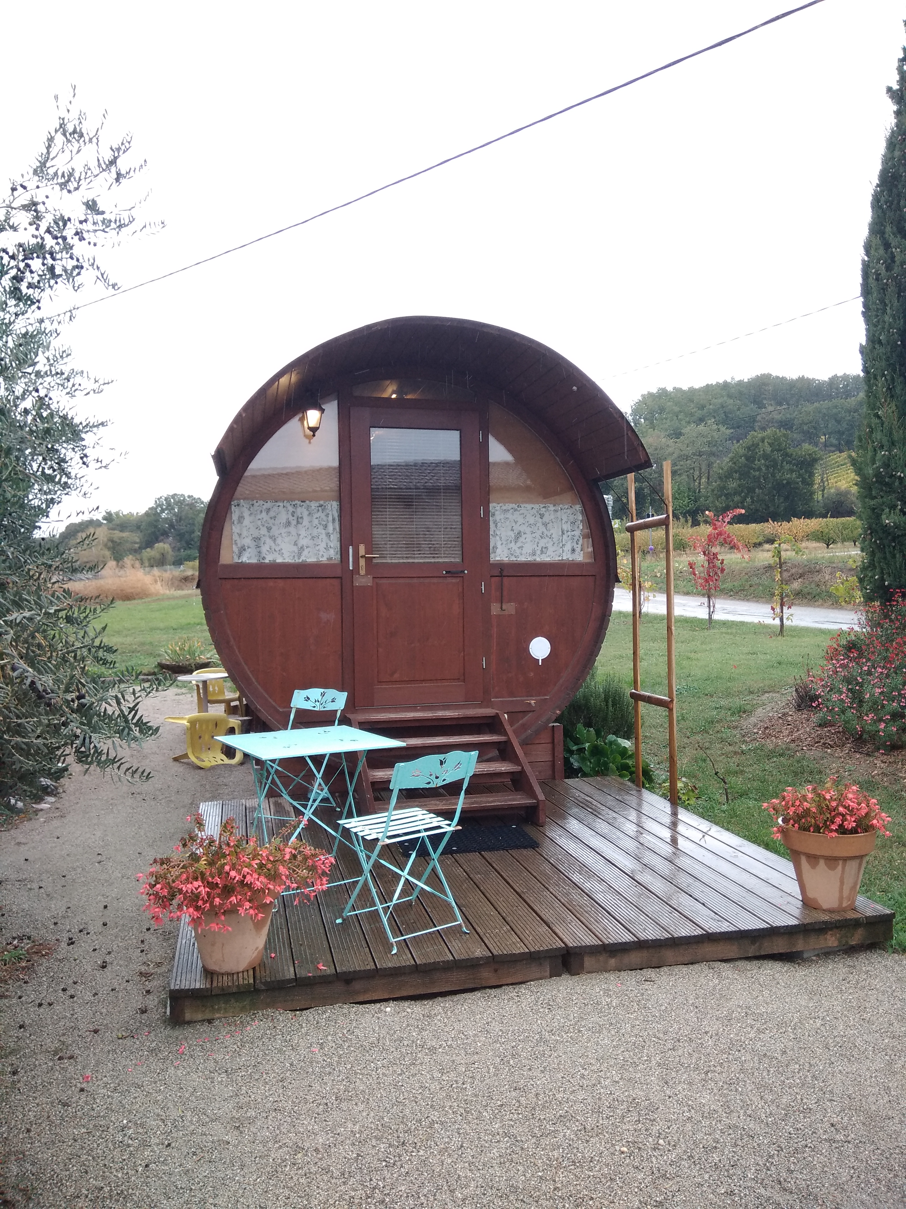 Nous avons séjourné une nuit dans le tonneau, expérience originale. Les propriétaires sont très accueillants et le petit déjeuner est servi avec des produits maison. L’endroit est très calme. La climatisation dans le tonneau est la bienvenue. Attention aux petites araignées et pince-oreilles qui se glissent parfois dans le tonneau, c’est un détail mais ce n’est pas dramatique.