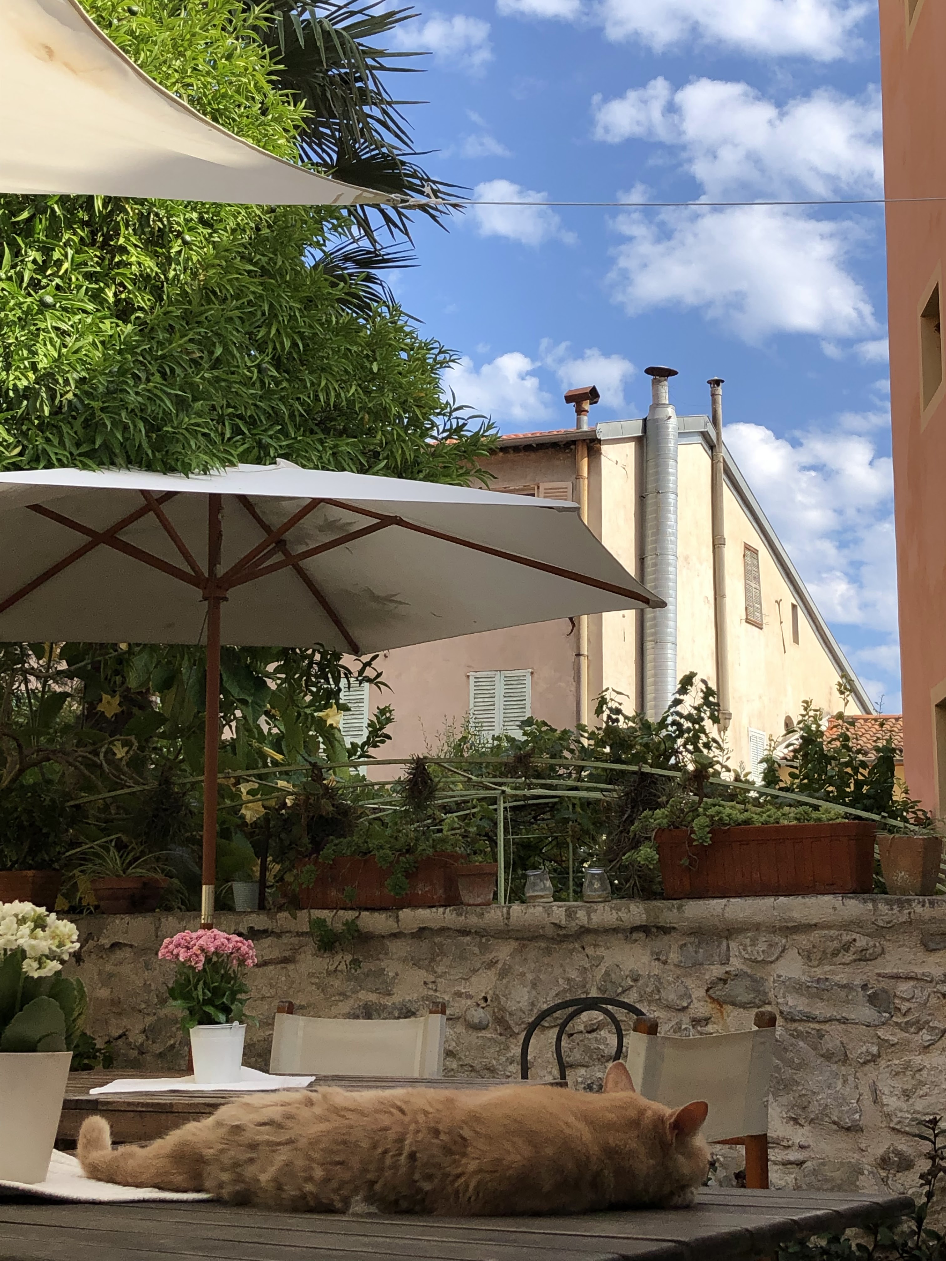Ce magnifique B&B est parfaitement situé et se trouve à quelques secondes des boutiques touristiques, des restaurants et de la plage des Sablettes. L'emplacement est tout simplement imbattable. Il est situé à côté d'une petite ruelle et possède un magnifique jardin privé qui était notre oasis pendant notre séjour de cinq jours. Béatrice mérite pleinement sa merveilleuse réputation car elle était disponible pour nous aider, nous et ses autres invités, pour tout, des réservations de dîner aux réservations de train, en passant par les services de traduction, etc. Notre suite avait un lit de repos pour notre fille et un grand lit confortable dans la mezzanine. Les grandes toilettes et la baignoire étaient idéales pour faire la vaisselle en fin de journée et nous avons pu sécher nos maillots de bain sur la grille chauffante. Béatrice prépare le petit-déjeuner tous les matins et propose des croissants/pains au chocolat frais, ainsi que des viandes, des fromages, de la baguette et des confitures fraîches (dont certaines sont préparées à partir de fruits de son jardin - essayez les confitures de citron et de mandarine). Nous avons pu commander un dîner à emporter et le déguster dans l'intimité de la cour, loin du bruit de la ville. C'était vraiment un délice. Comme dans la plupart des endroits, il n'y a pas de climatisation, mais plusieurs ventilateurs le rendent étonnamment confortable. Dans l’ensemble, c’est un endroit parfait pour profiter de quelques jours d’été à Menton, et j’ai hâte d’y revenir.