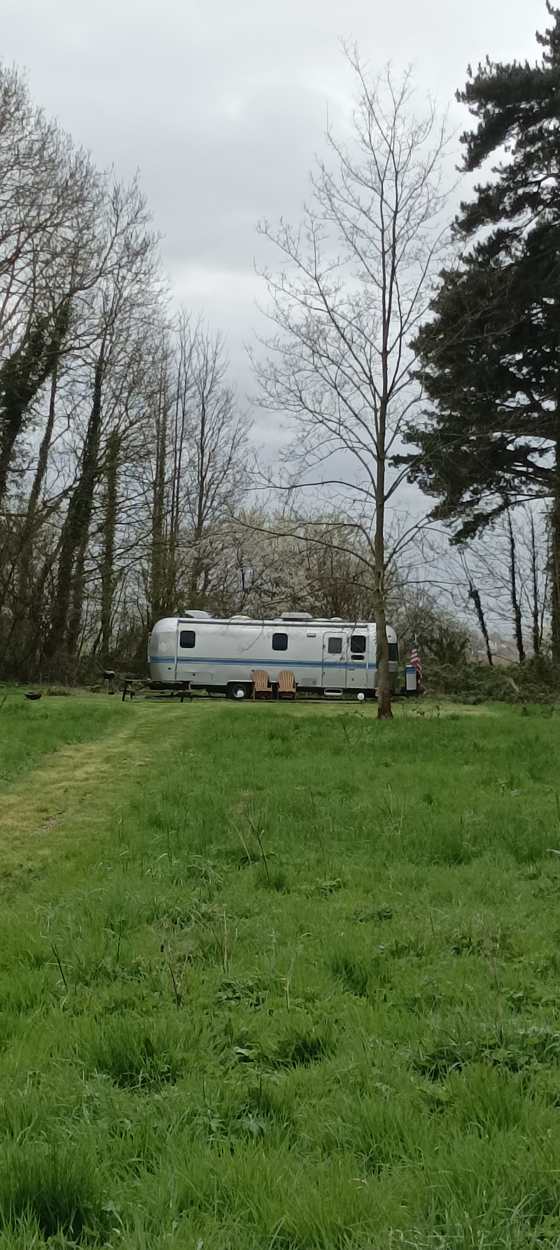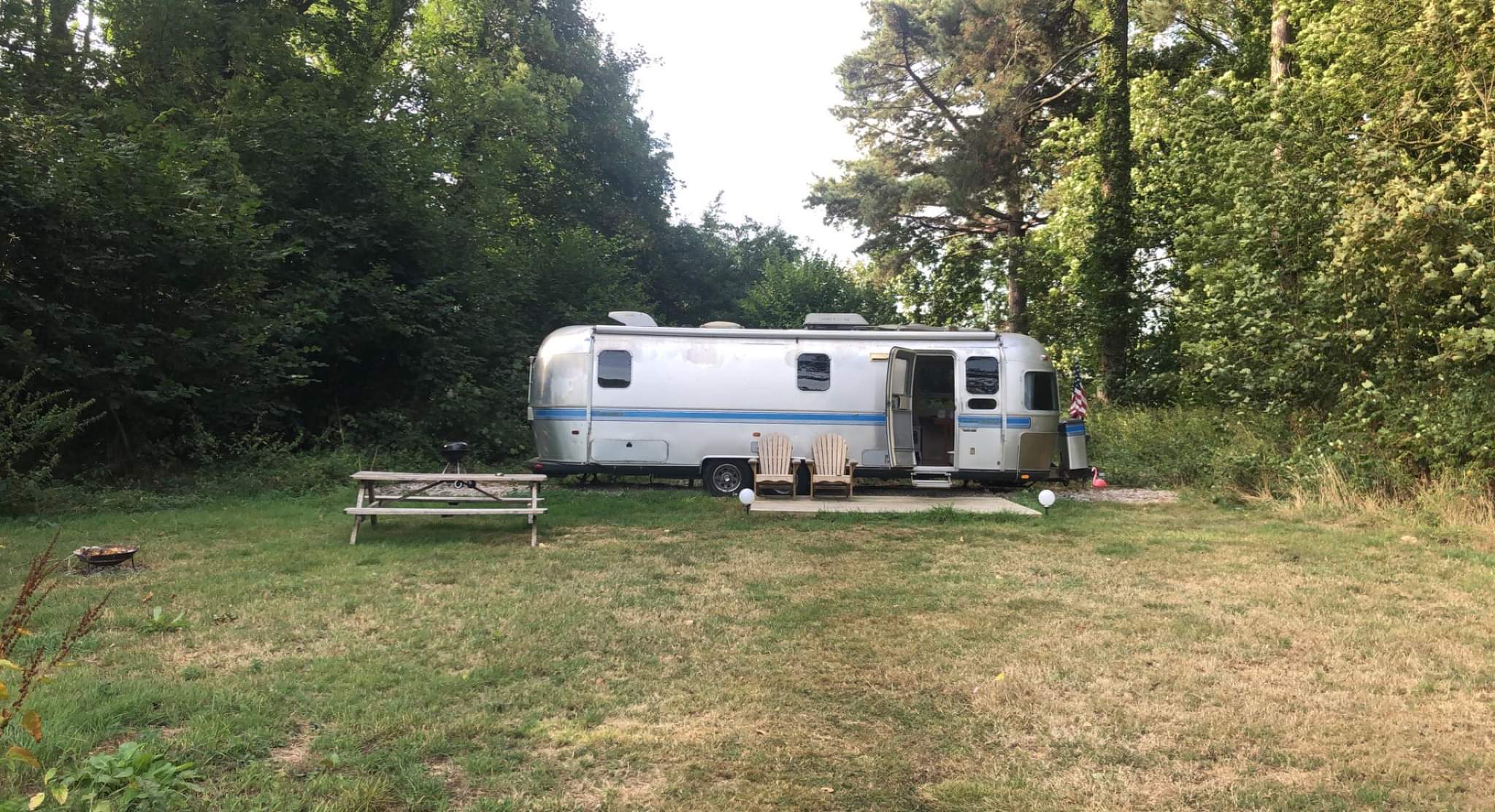 Belle petite parenthèse américaine dans un parc de verdure ! Nous avons réservé pour un anniversaire, cette nuit dans un logement atypique : la caravane américaine. L'accueil téléphonique avait été très sympathique, à notre arrivée, tout autant. La caravane est sympa, très bien équipée. De belles intentions, avec produit ménagers et hygiène à disposition, ainsi que dosettes café et choco. Nous avions réservé un restaurant pour la soirée mais il y avait four, micro onde, frigo à disposition, barbecue et table pique nique à l'extérieur. Ce matin, petit déjeuner amené à l'heure convenue, comportant 2 viennoiseries par personne, jus d'orange, et yaourts maison... Le parc est immense et les différents logements loin les uns des autres, ce qui assure une belle tranquilité. Suggestion : pour le petit déjeuner, (qui est parfait pour un mangeur de petit appétit) peut-être envisager un peu de pain avec une part de beurre. En revanche, prévoyez une deuxième paire de chaussures pour garder les pieds au sec. Simplement parceque l'accès à la caravane est herbeux, et que, lorsqu'il a plu, ou avec la rosée, les chaussures peuvent rester mouillées.