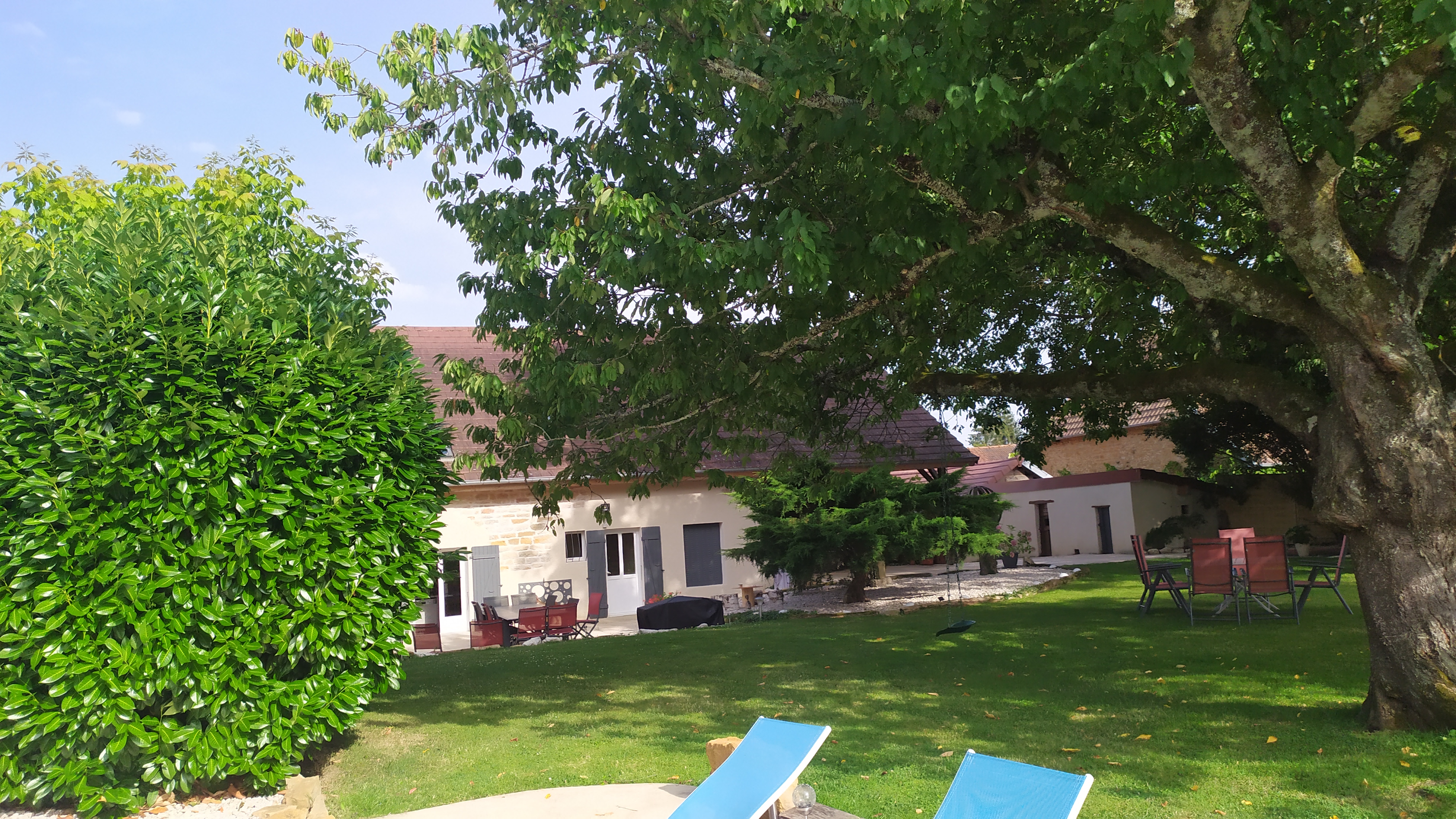 Endroit magnifique. Un beau jardin arboré, une grande piscine extérieure, diverses petites terrasses, des jeux pour les enfants... Petits déjeuner maison très copieux et délicieux. Chambre spacieuse avec télévision, climatiseur, prises près du lit, petits gels douches, cotons-tige et disques démaquillants. Les propriétaires n'ont de cesse de vous faire plaisir, ils sont à l'écoute de vos désirs, vous renseignent sur les visites et restaurants par rapport à vos envies... N'hésitez pas à vous arrêter pour quelques nuits si vous passez dans la région, vous ne le regretterez pas ! A refaire !
