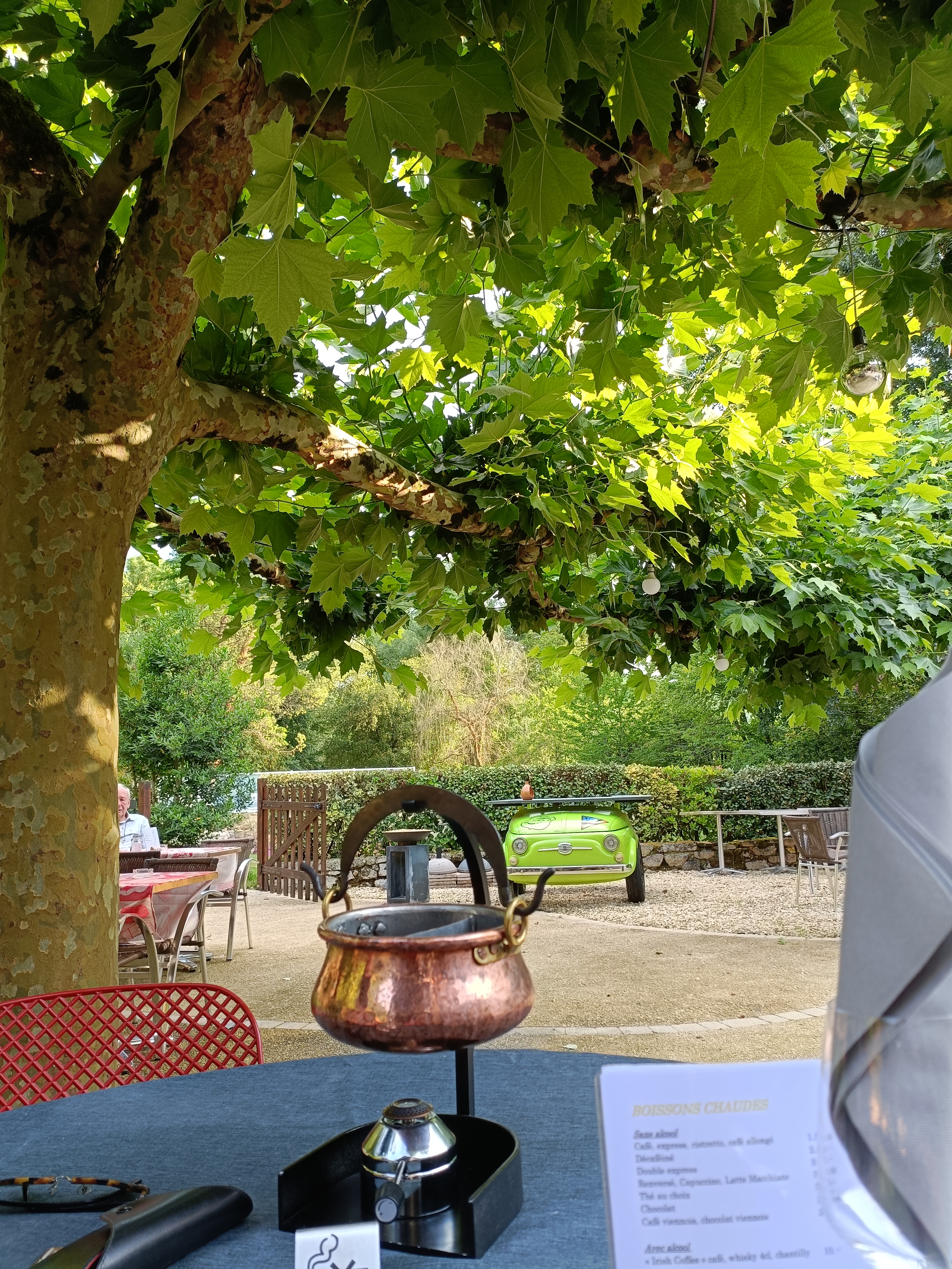 Terrasse ombragée et calme. Accueil plus que sympathique. Menus et carte pour toutes les bourses. Plats raffinés au niveau des yeux et des papilles. Nous avons passé un très agréable moment. Merci