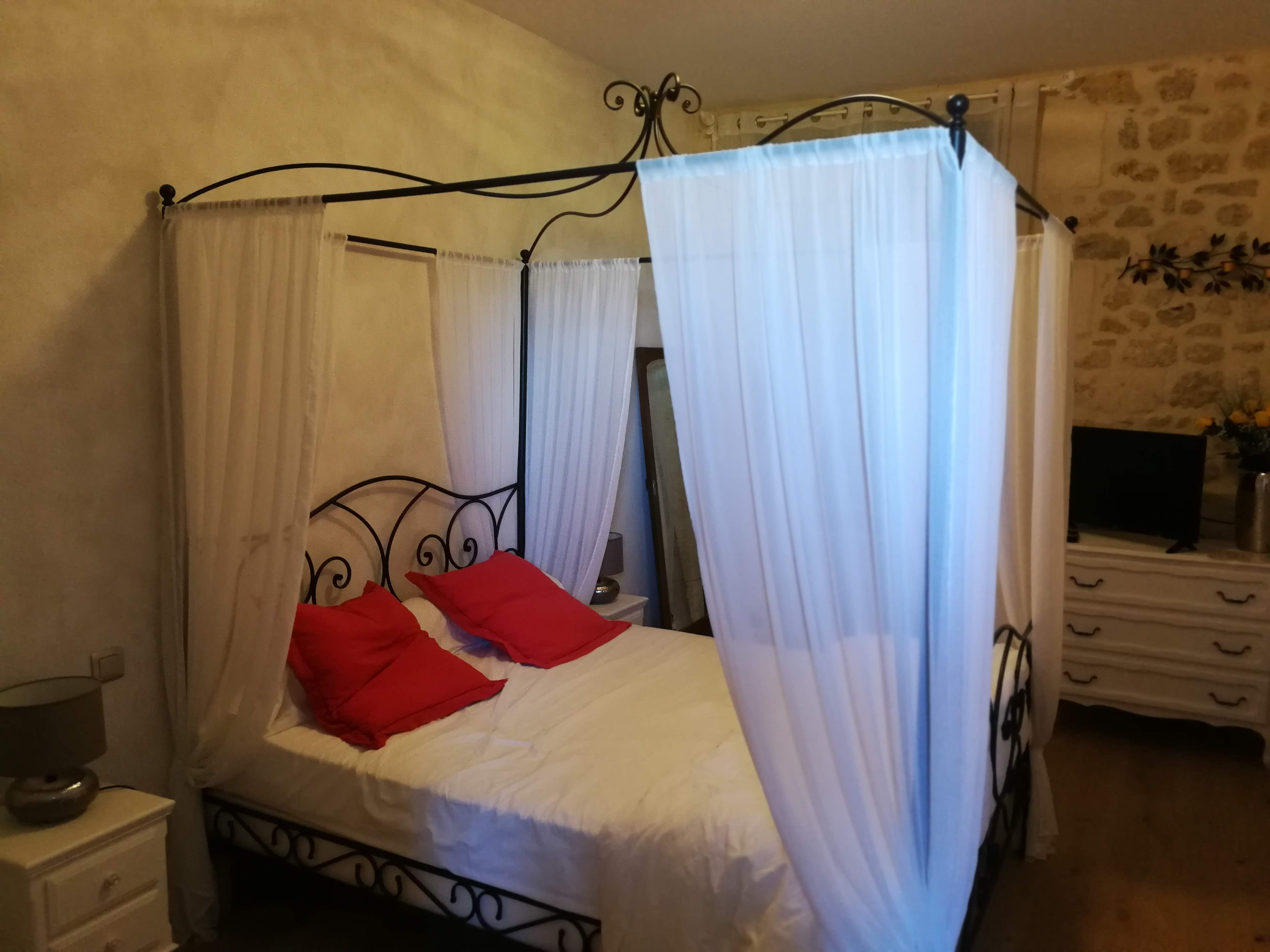 Chambre d'hôte de grande qualité, décoration soignée, literie confortable, propreté irréprochable et propriétaires agréables et accueillants. Nous avons pris la chambre avec le lit king size, une belle salle de bain et une entrée séparée. Rien à dire, prestation haut de gamme. Chambre très belle avec des pierres apparentes. Deux nuits dans la région de Blaye, visites et dégustation de vin au programme. Je vous conseille de dîner sur place, Claudia et Stéphane cuisinent les légumes du jardin entre autres et en anciens restaurateurs cela vaut le détour, sans oublier les confitures maison du matin.