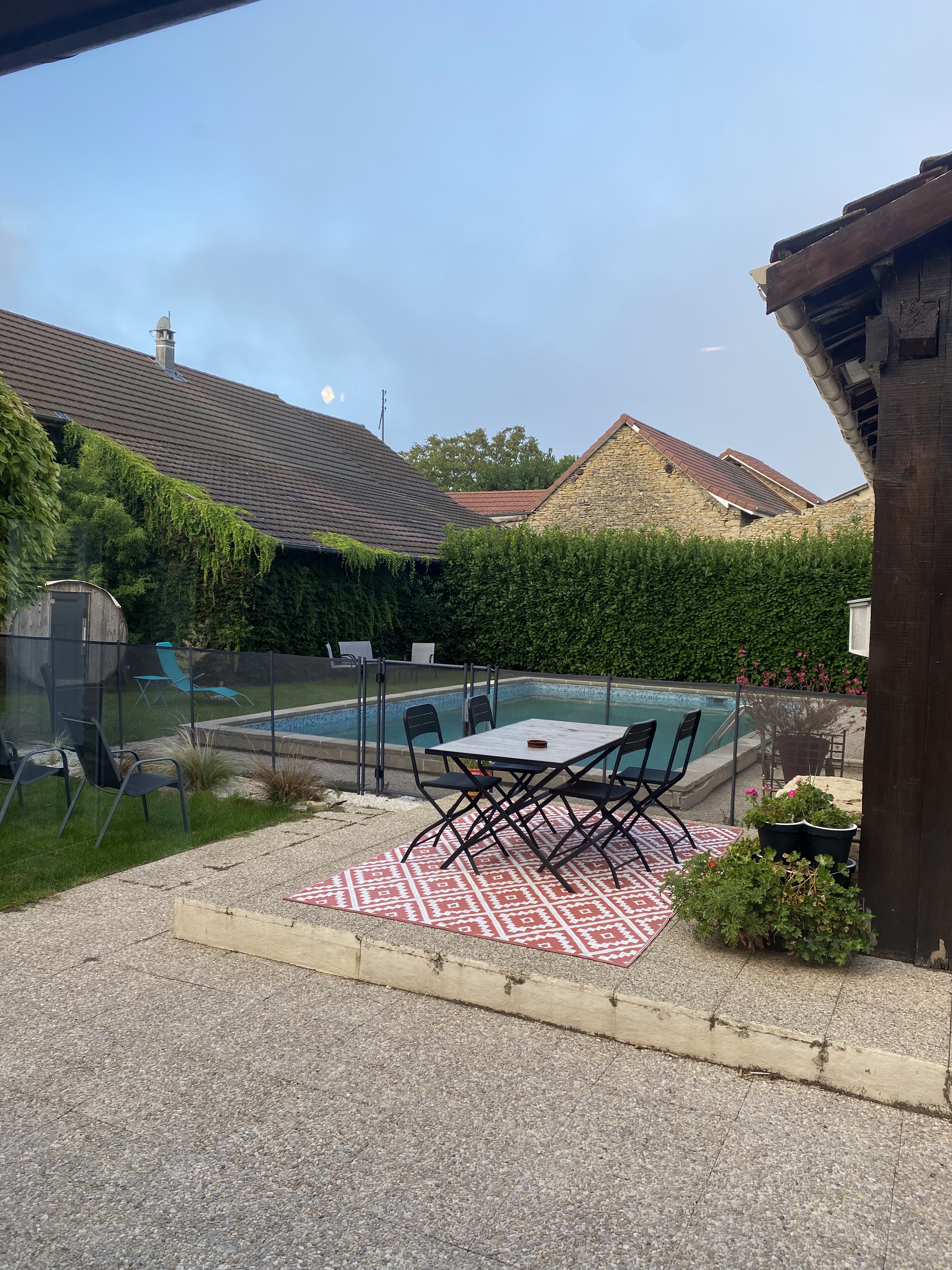 L'étape chez Aurélie et Pascal a été un excellent moment de partage. Avec nos amis Élisabeth et Éric, nous avons apprécié le lieu calme et bucolique, le confort des chambres, même si un peu petites, l'apéritif devant la piscine, le très bon et copieux dîner, et un plus entre fromage et dessert : une balade de moins de 50 m pour aller voir le coucher de soleil sur le Mont Blanc ! Nicole et Jean-Loup