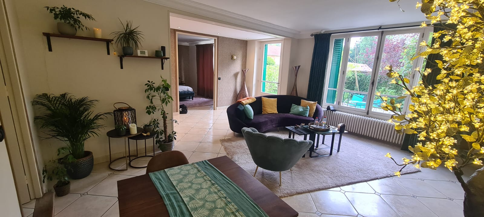 We end initialement pour se balader dans Fontainebleau mais comme le temps était à la pluie, nous en avons profité pour nous détendre dans le sauna et le bain à bulles. Le logement très propre et très confortable avec toutes les commodités (wifi, cuisine complète, télévision, tablette Ipad avec Spotify ). La décoration est toute en nuances de bleu, d'or et de blanc est de très bon goût (même les toilettes sont décorés avec charme). Tres bon choix de l'Art déco mêlé à la modernité et très confortable. L'arbre lumineux est magnifique, le matelas du lit (King Size s'il vous plaît) est très confortable. Même le carrelage est très beau ! Pleins de petites attentions comme du chocolat, du café, du thé et des boissons vous attendront en plus du petit déjeuner copieux et délicieux. Nous avons passé un excellent séjour en amoureux.