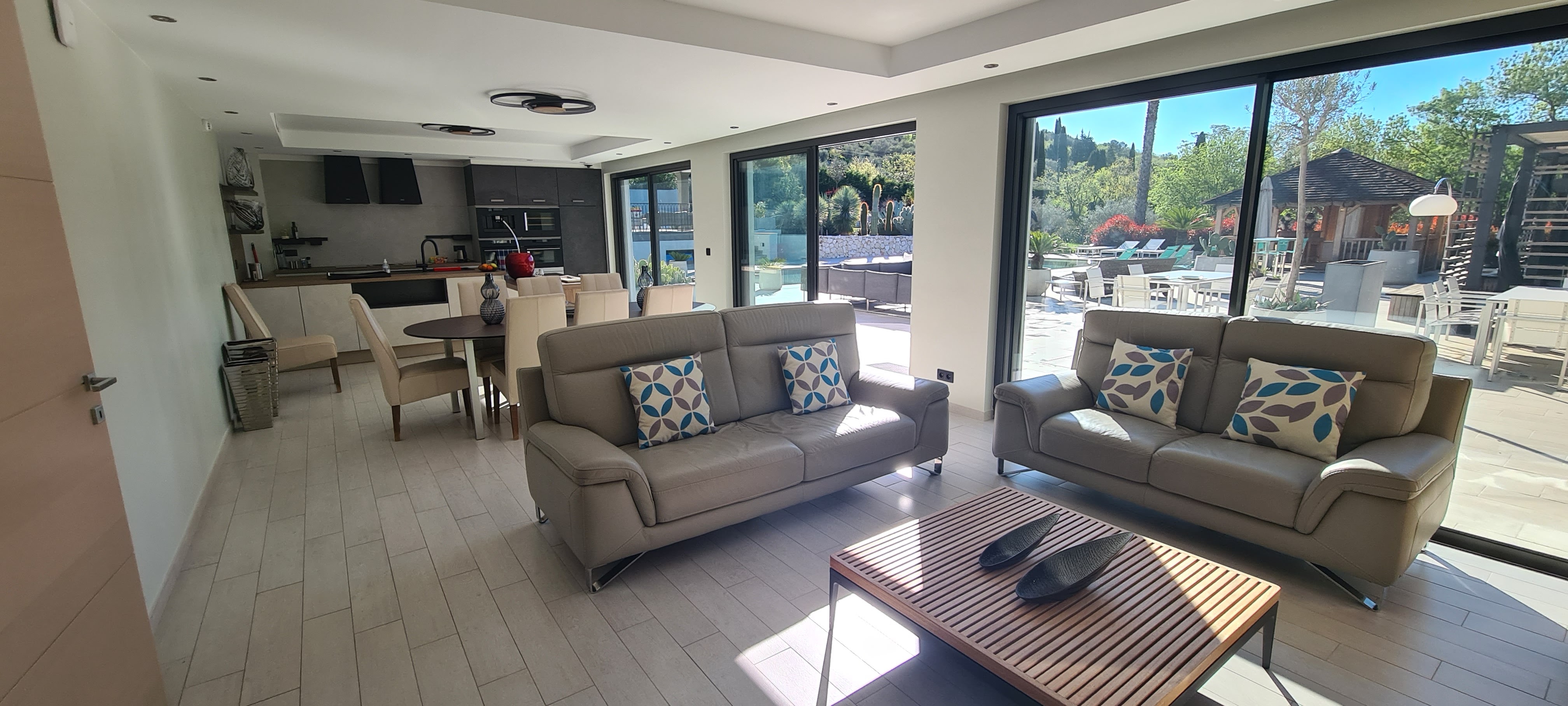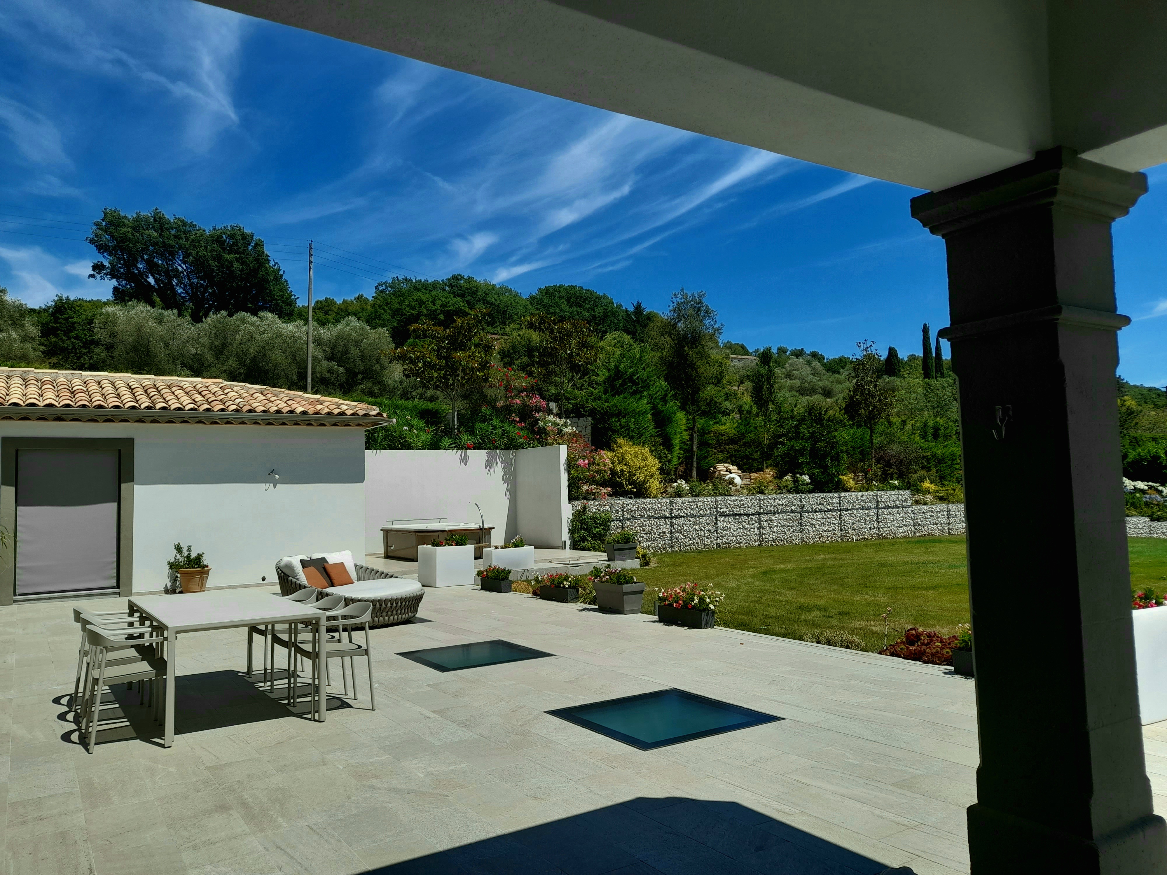 Très belle endroit au calme Belle et grande chambre moderne. Partie commune avec magnifique cuisine ouverte sur la terrasse et un tres bel espace piscine Endroit zen non loin de Valbonne et Mougins