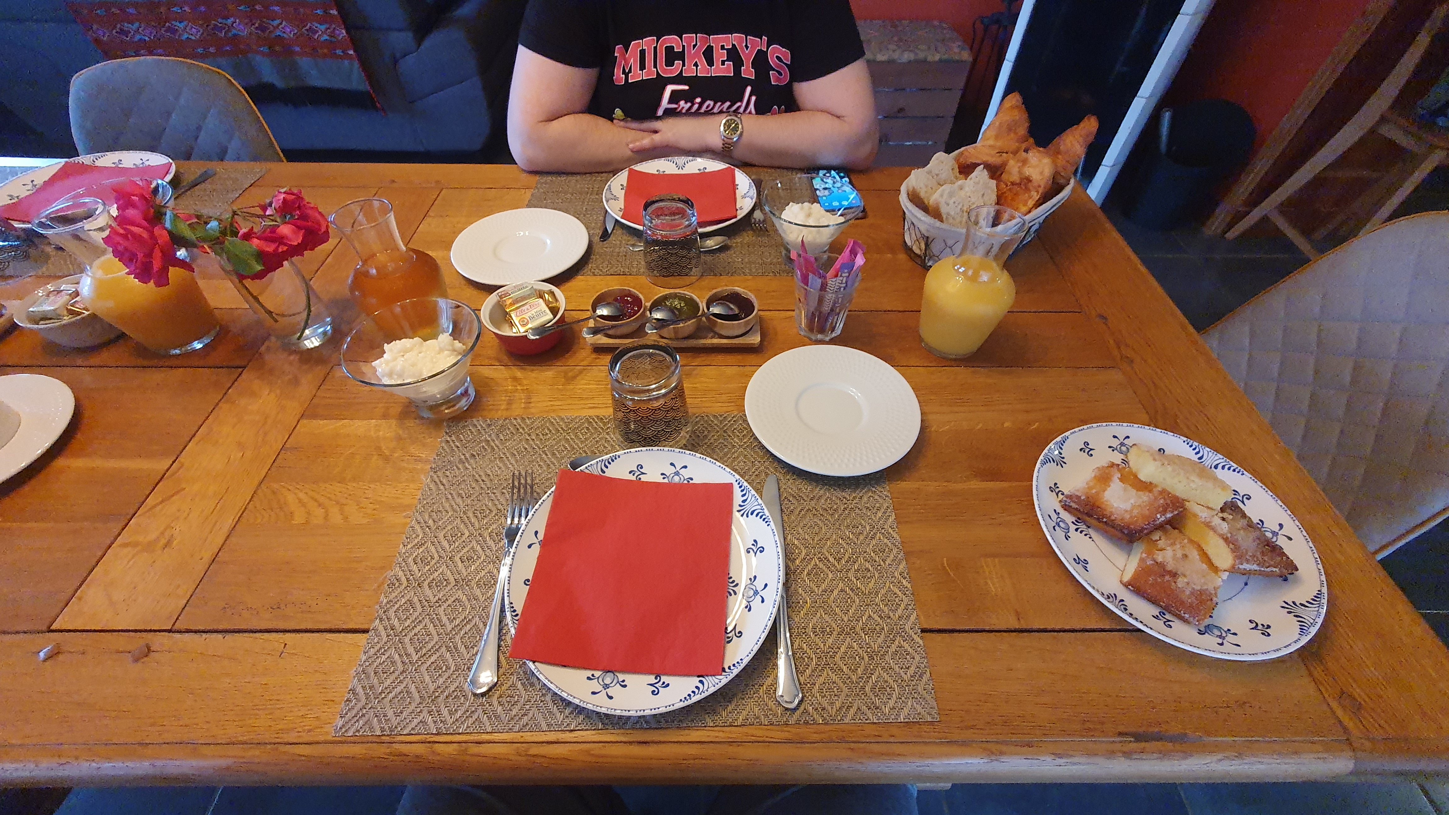 Nous sommes arrivés aux alentours de 19h, notre chambre était chauffée au préalable ce qui est très agréable lors de temps froid comme le weekend où nous y étions. La chambre était très propre avec du matériel a6 disposition comme un sèche-cheveux et autres nécessaires de toilettes. Le petit déjeuner est servi en bas dans l'espace de vie des hôtes, il est très complet. De plus la vue de leur maison est tout simplement magnifique. Nous remercions les hôtes pour leur accueil !