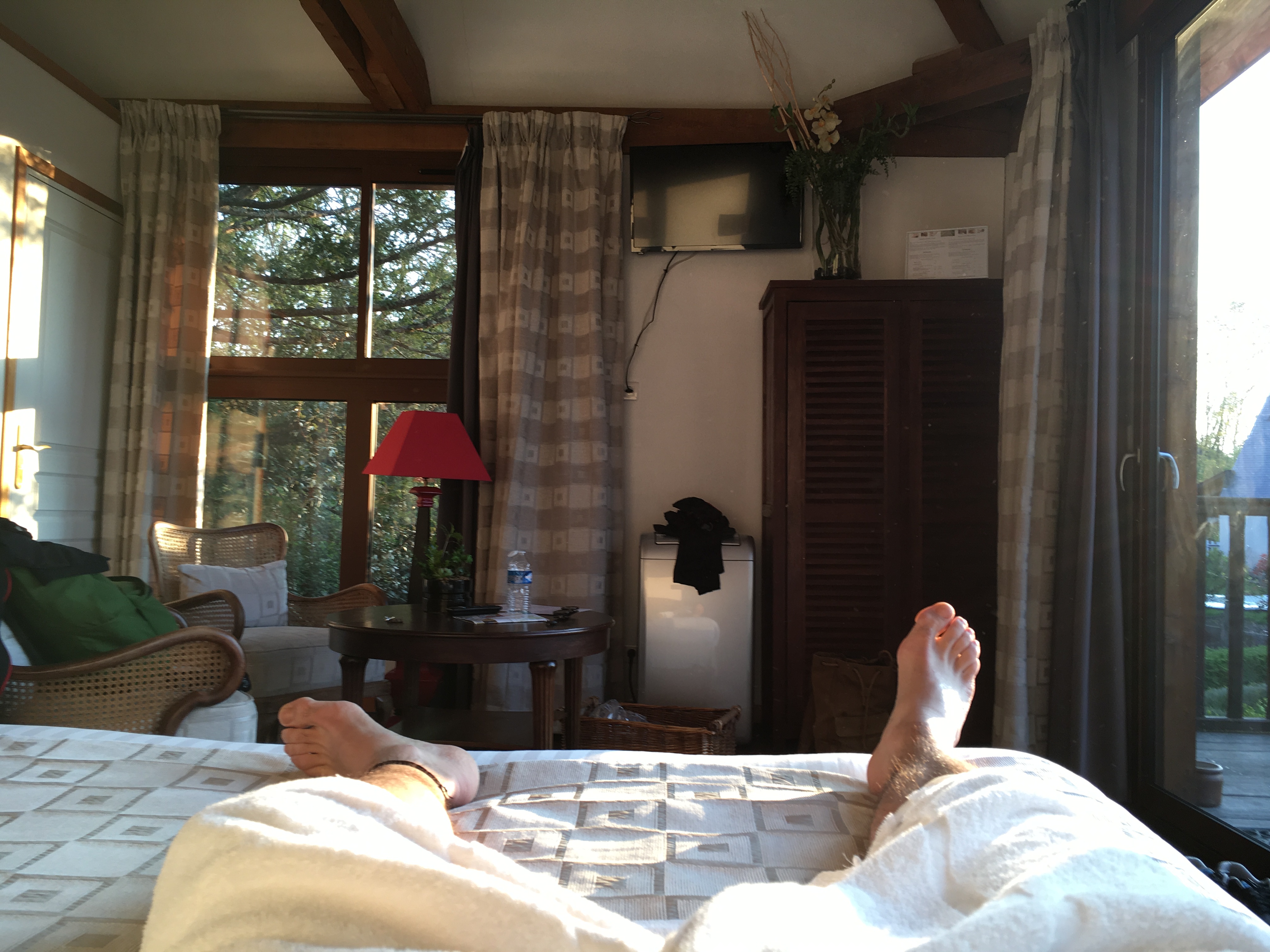Alors là... Celui qui ne reste pas dans une cabane à malheureusement loupé quelque chose! Cabane dans les arbres avec propre jacuzzi... une grande chambre avec une baie vitrée sur l’extérieur, un panier repas simple et efficace, une literie parfaite et une maîtresse de maison aussi discrète, qu’élégante, que souriante même en nous voyant arriver sur nos vélos! Aucun apriori au regard de nos tenues! Un très grand merci pour ce beau moment de déconnexion avec les oiseaux qui nous ont réveillé et tout cela a 3 mins a pied du château
