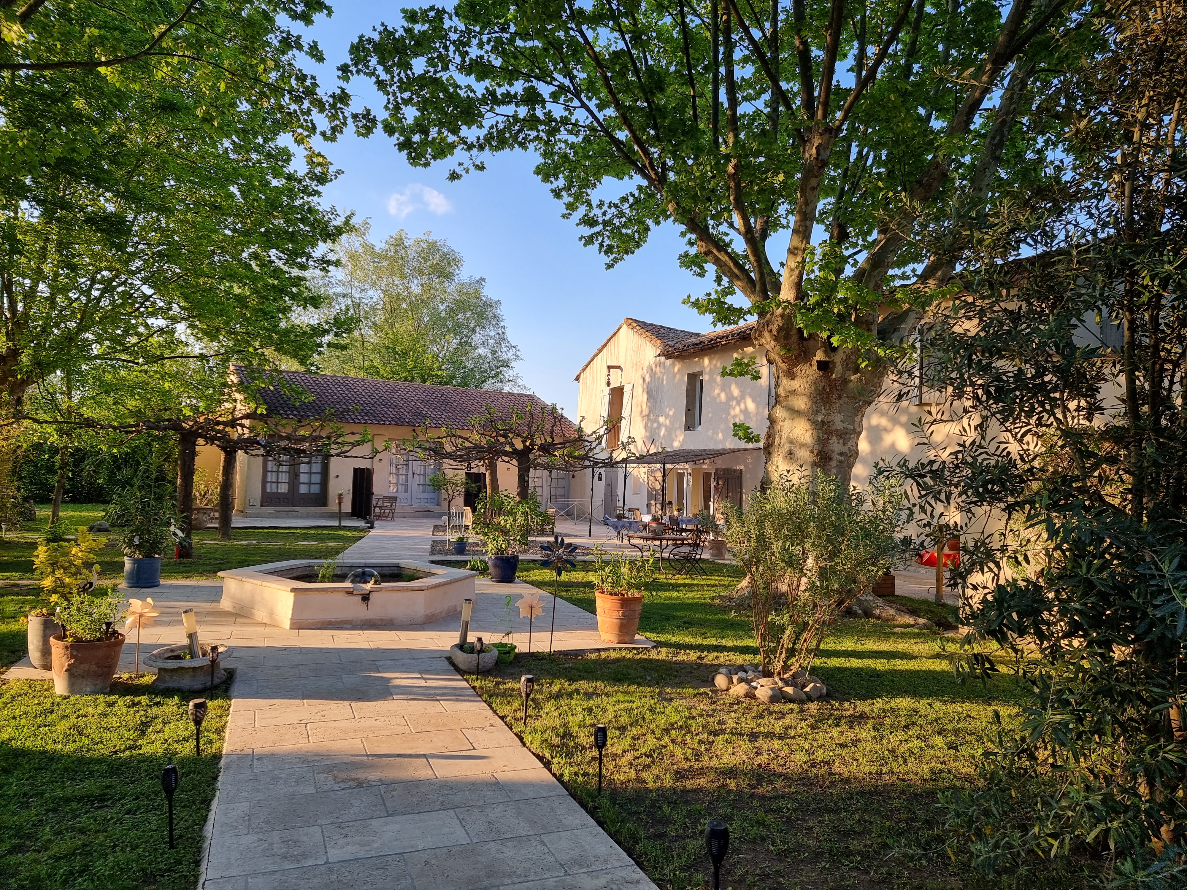Un bien situé une belle demeure un accueil très sympa belle piscine la chambre AGRÉABLE l'apéritif très convivial et le dîner 👍👍👍👍tartare de saumon en entrée des brochettes de taureaux de Camargue une belle petite sauce et en dessert mascarpone aux mûres très rafraîchissant café compris ( 24€ ) Dîner sympa sans beaucoup de chichis simple mais bien 👍👍👍👍👍👍👍petit déjeuner TB