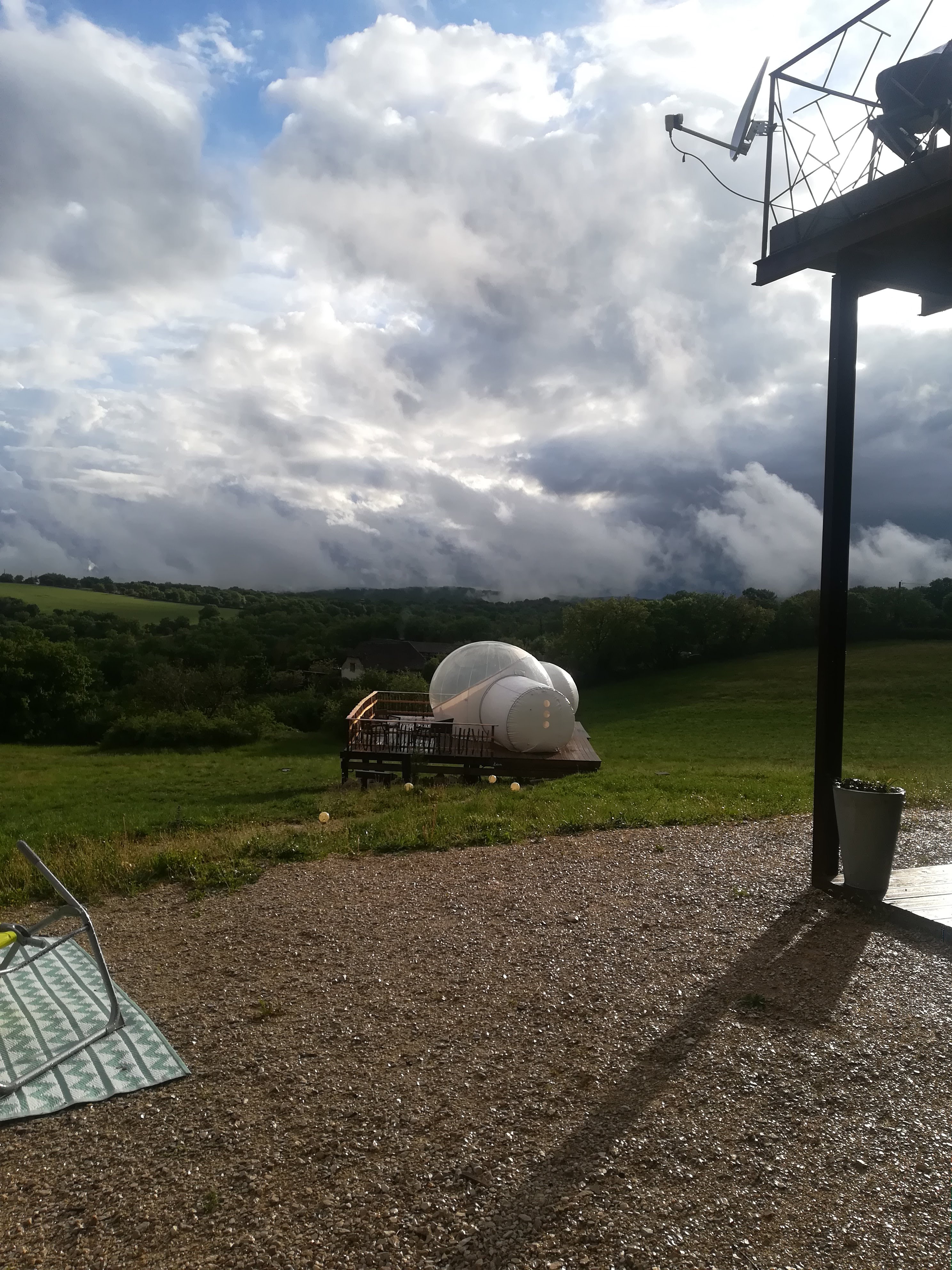 Déjà l'accueil d'Annie est très chaleureux ce qui est fortement appréciable. Ensuite, la bulle est minimaliste mais immédiatement on se sent dans un autre monde Même avec la pluie l'ambiance était particulière et dans la nuit pouvoir admirer les étoiles c'était super! Nous avions pris le panier gourmand qui était très bien. Je recommande vivement cet établissement