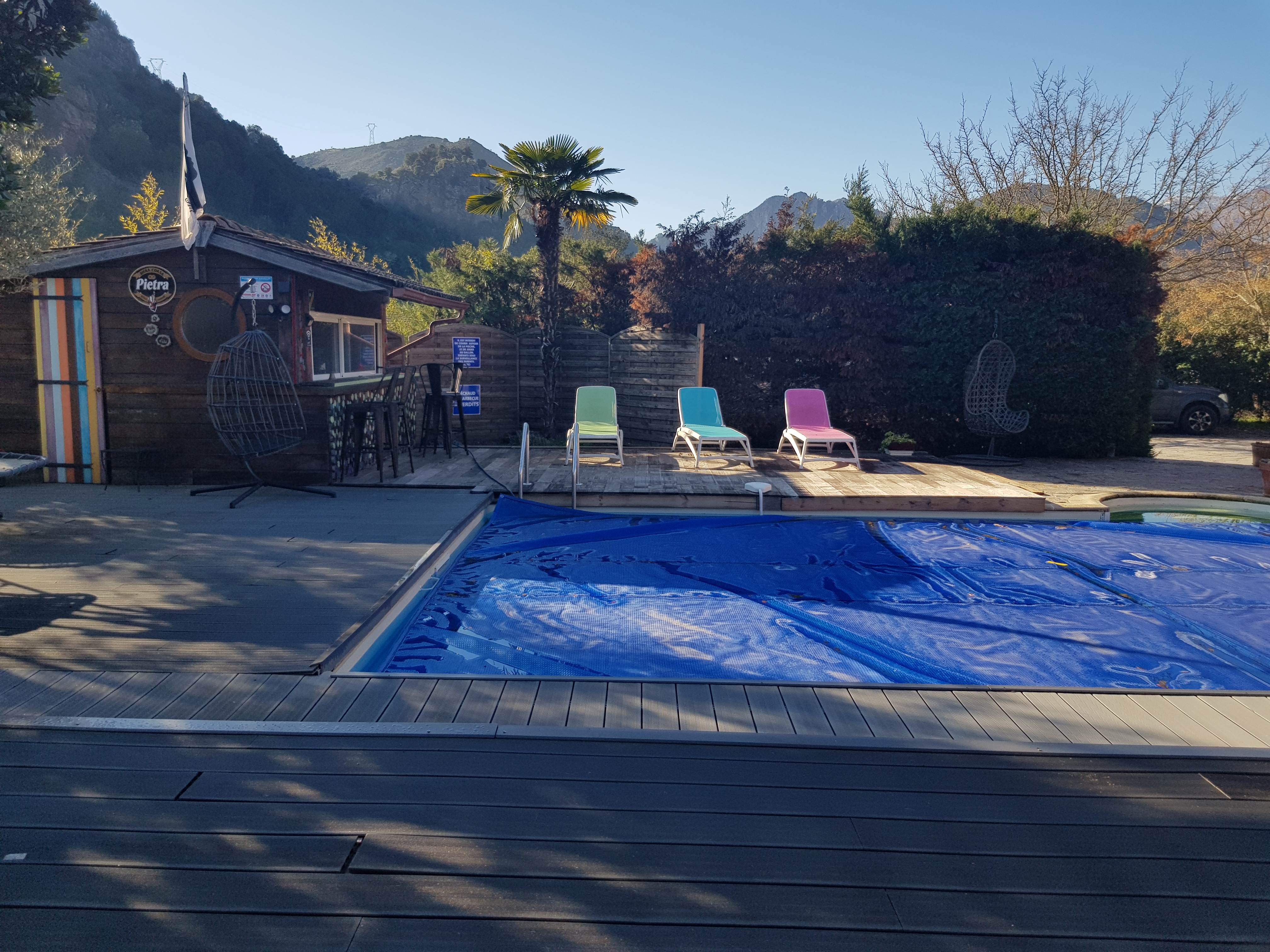 Si vous recherchez la tranquillité passer votre chemin, aucune intimité, vous avez l'impression de manger avec votre voisin. Le cadre est quand même très sympa, la rivière est très belle. La piscine était pas très propre du vert dans le fond. Le logement pour 4 personnes est en fait pour 2. impossible de manger à 4 à l'intérieur la table est trop petite et il y a que 2 chaises. Canapé lit atroce il grince dès qu'on fait un mouvement. Le petit déjeuner est très copieux. L'extérieur fait très désordre, des objets partout, des palettes....