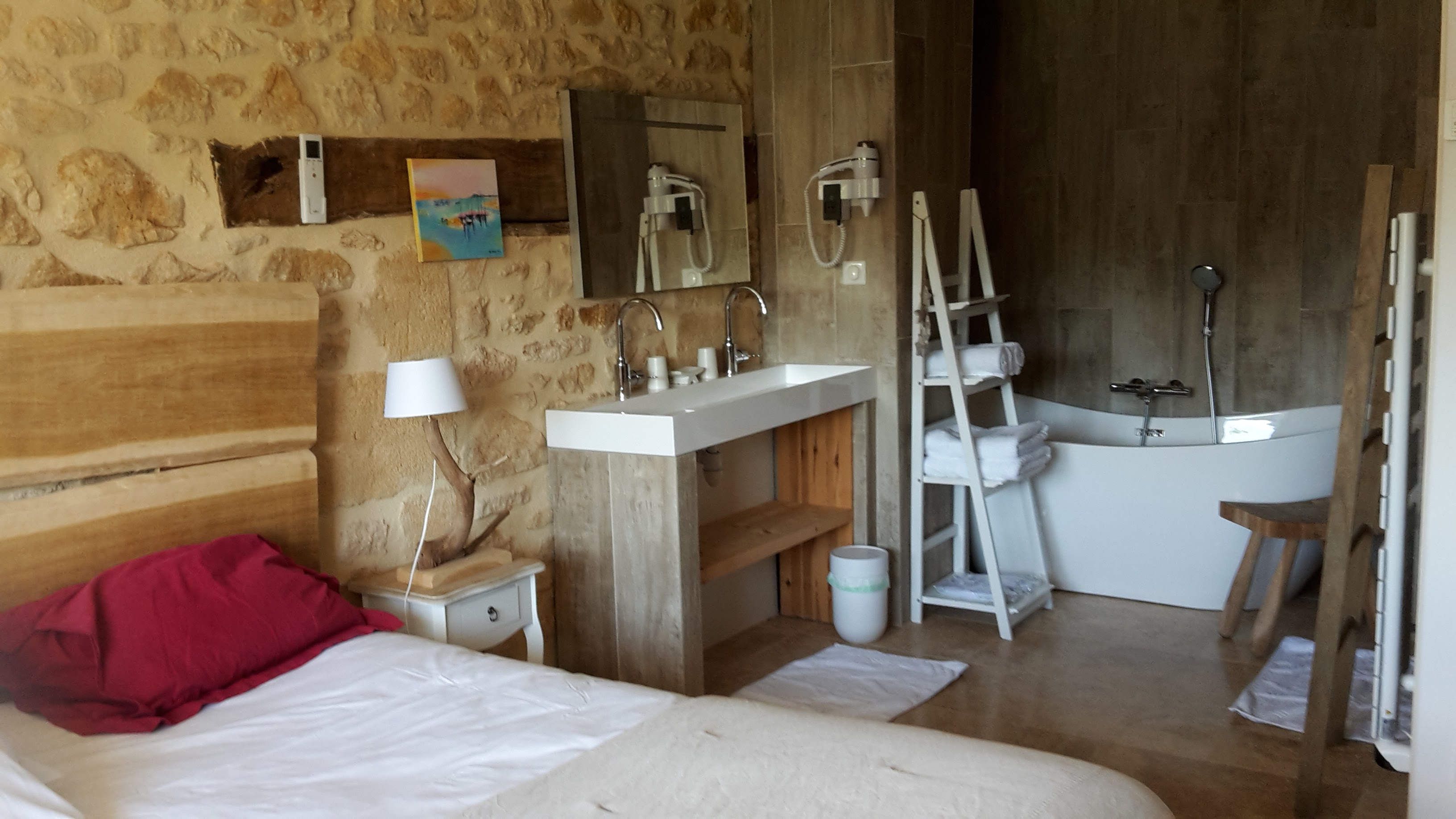 5 étoiles ! Ça veut tout dire ou presque ! Endroit magnifique, calme, bucolique...Déco magique, pleines de touches de couleurs, d'authenticité, mélange de moderne et d'ancien...chambre Domme spacieuse, équipement de qualité partout...Accueil par Anastasia et Cyril des plus agréables et sympathiques. Au petit soin pour leurs hôtes. La piscine de 15 m intérieure/ extérieure et le jacuzzi extérieur contribuent à des moments de relaxation et de détente. Nous n'avons pas pris l'option massage mais à en voir l'écrin où cela se passe, ça doit être cool.... Un gîtes et chambres de charme exceptionnel. A réserver sans hésitation...1