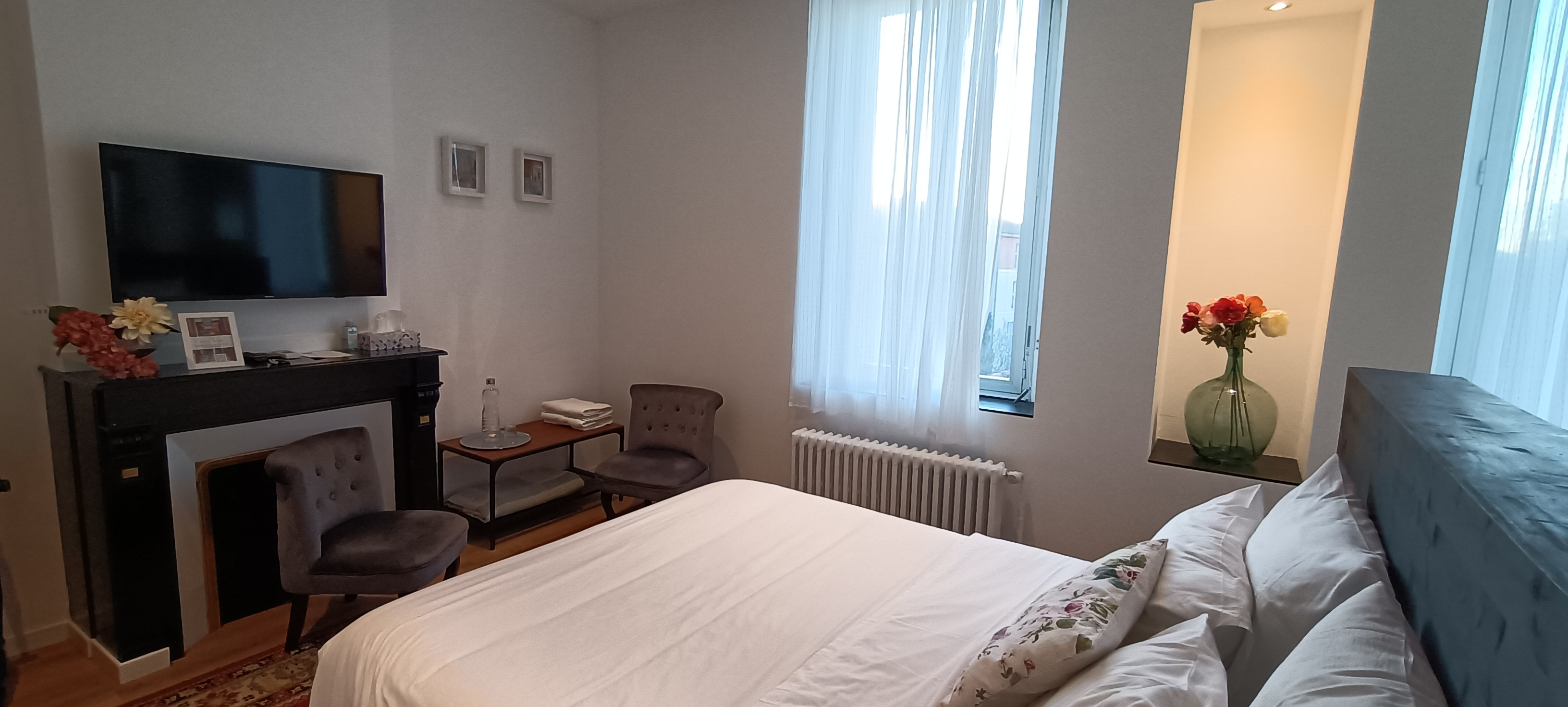 Nous avons passé une nuit ds cette magnifique demeure. Nous avons beaucoup apprécié L'accueil que nous ont réservé les propriétaires, adorables. Bien que mon anglais était assez mauvais Nous avons pu communiquer sans difficultés. La chambre était très jolie et bien agencée. La preuve en images 😁 merci Nous n'hésiterons pas à partager l'adresse de ce lieu.