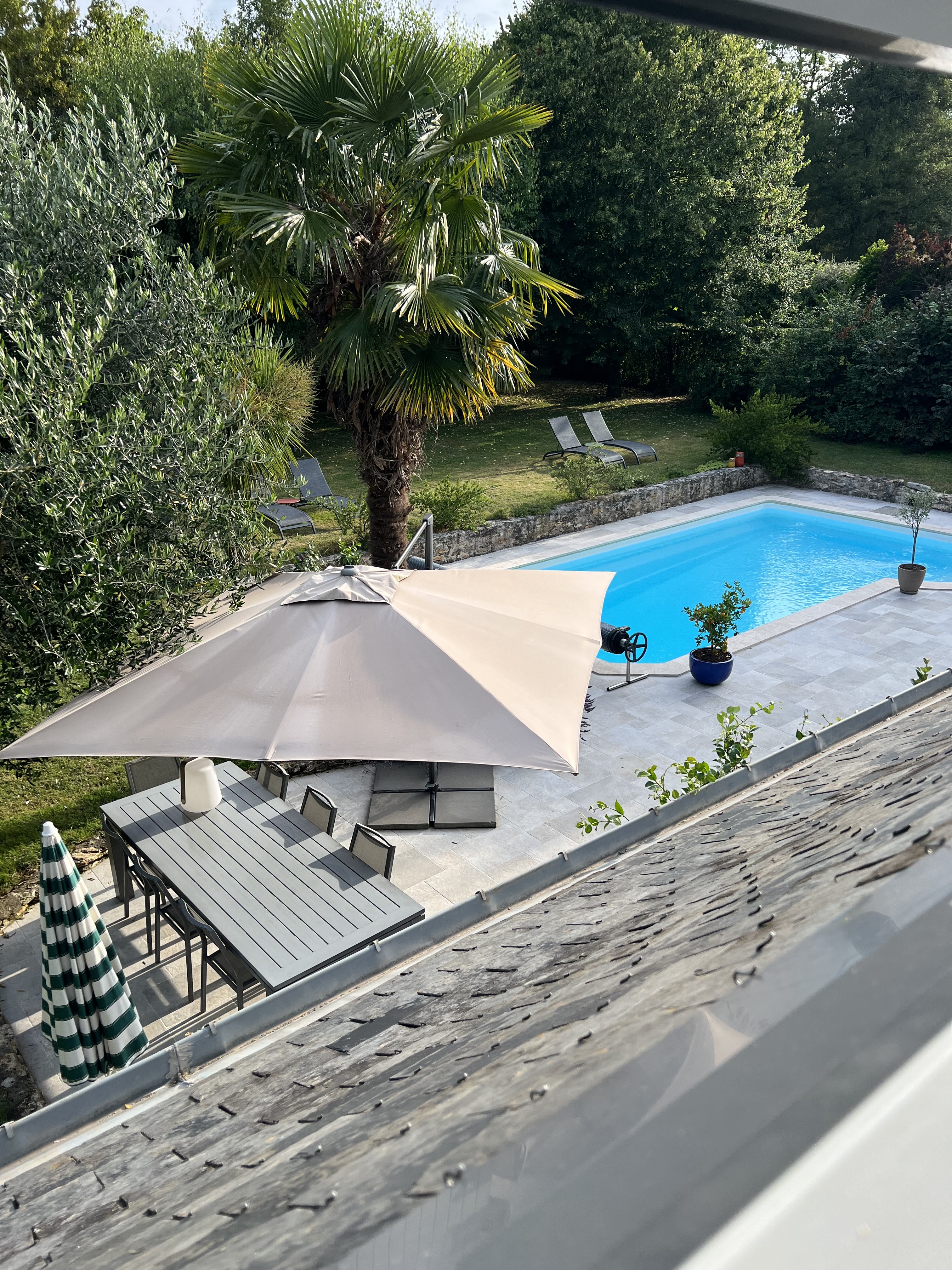 Chambre près du toit , mais super confort , piscine et décors superbes. Ombragé ... Couples de gérants super sympas et très accueillants . Super petit déjeuner , rien n'y manque . Bref je conseille vivement 👍👍😊