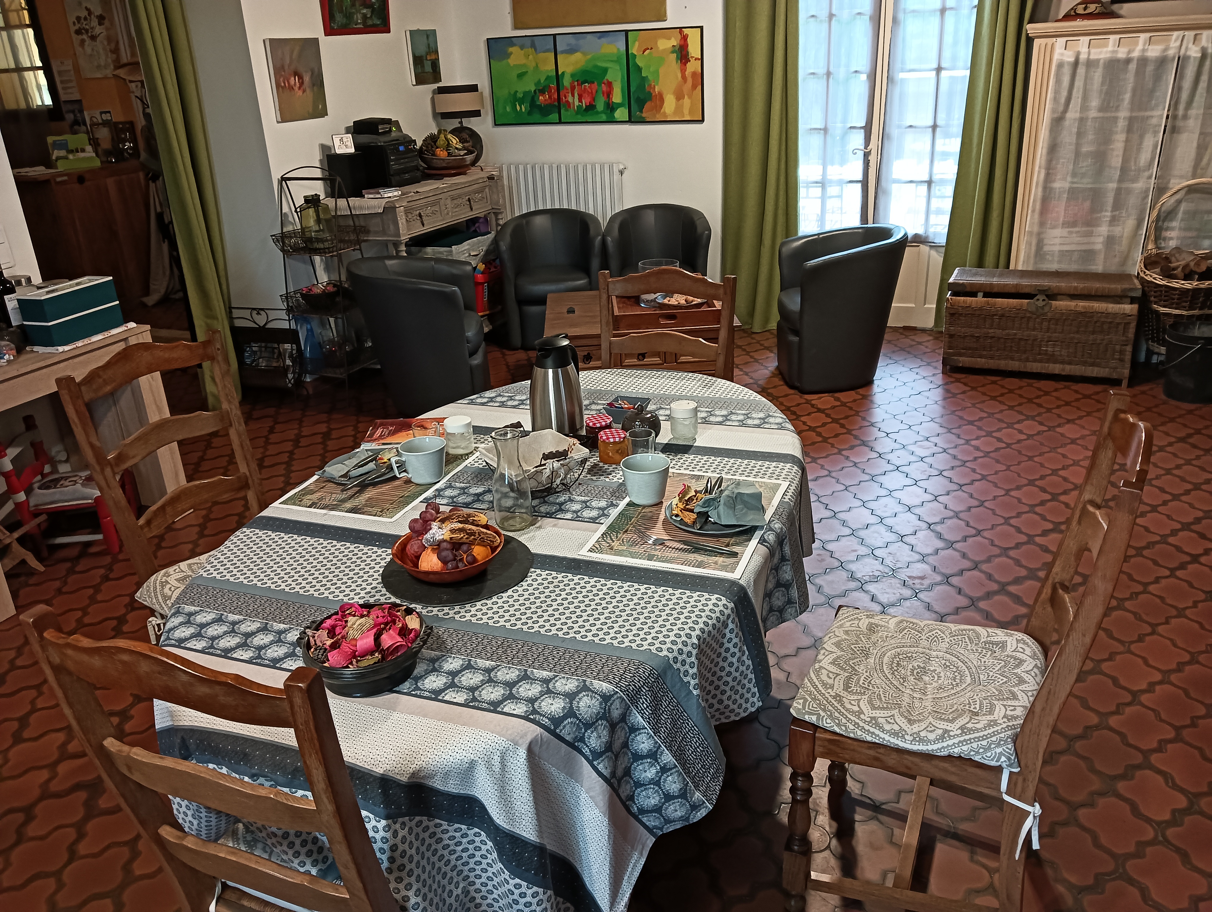 Un accueil très chaleureux avec une hôtesse charmante et super dynamique toujours soucieuse du bien être de ses clients Une chambre cosy et spacieuse Le top du top pour la table d hôtes que ns avons partagé à 6 dans un moment convivial et dans une salle à manger fort agréable Isabelle n'hésite pas à ns faire déguster ses petites fabrications maison comme son vin de mandarine pour l apéro et son rhum arrangé en digestif après un repas copieux et délicieux digne d un bon restaurant Goult est aussi un village très chouette à deux pas de la chambre N hésitez pas à goûter aussi le vin de la cave des lumières juste en face où l accueil est tout aussi sympathique Bon courage à Isabelle pour la saison à venir
